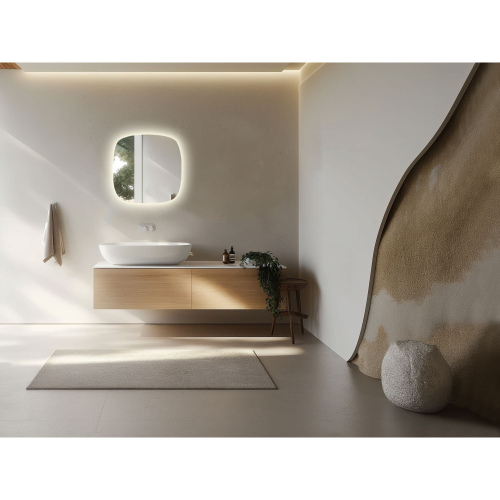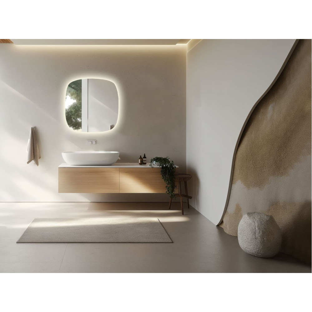 Элегантное зеркало неправильной квадратной формы с плавно скруглёнными углами станет изюминкой современного интерьера. Его мягкие линии создают гармонию и ощущение уюта, а минималистичный дизайн идеально сочетается с любыми стилями — от скандинавского до современного и минимализма.