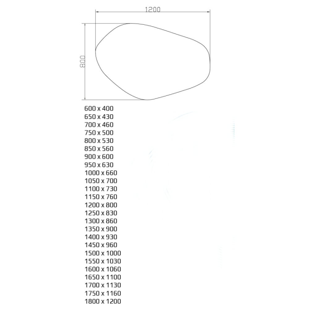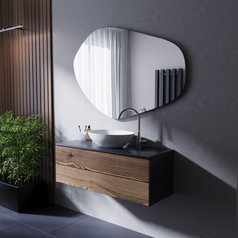Неправильная асимметричная форма — зеркало выходит за рамки стандартных геометрий, его изгибы органичны и индивидуальны.