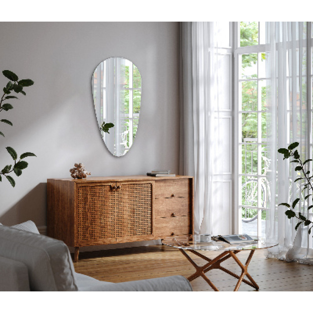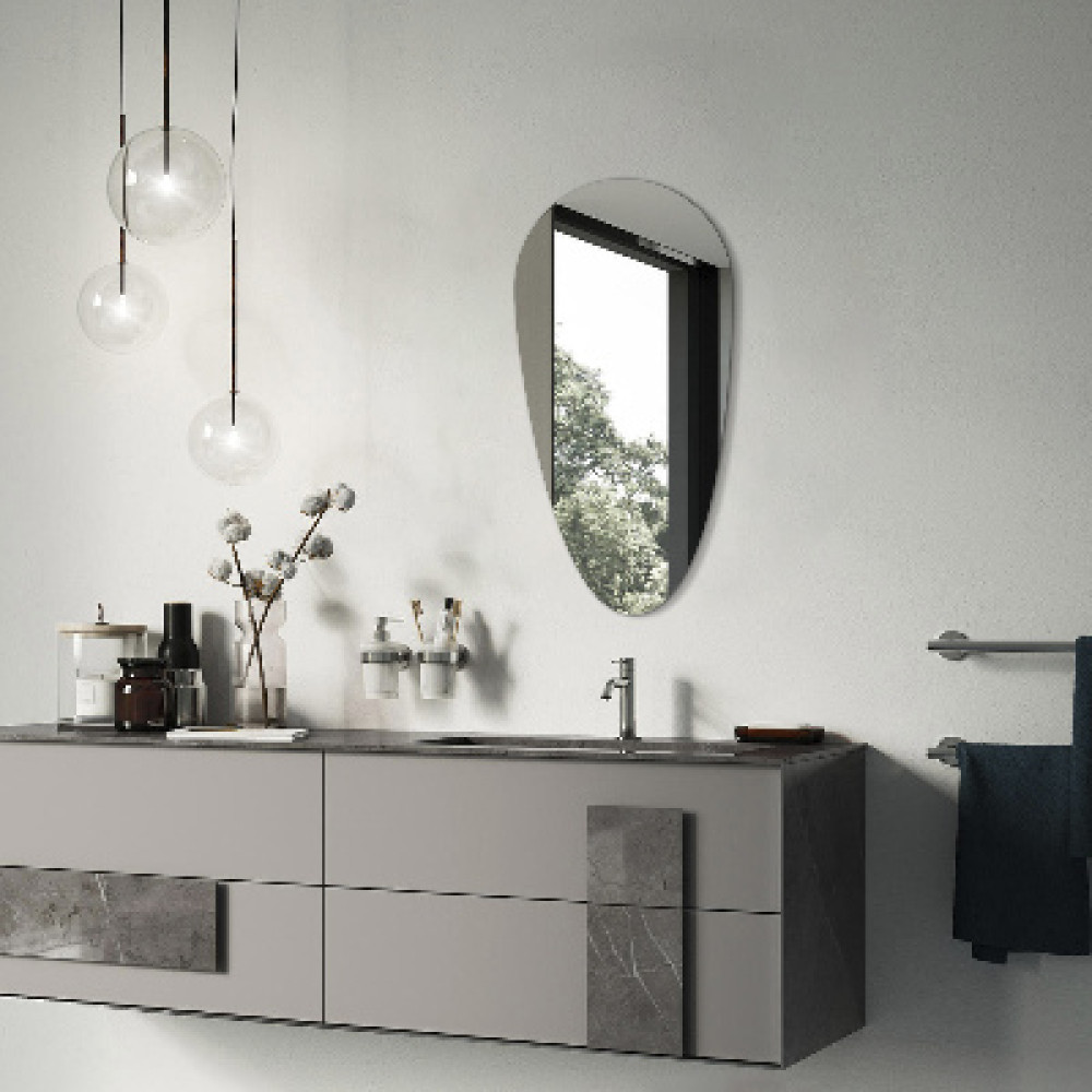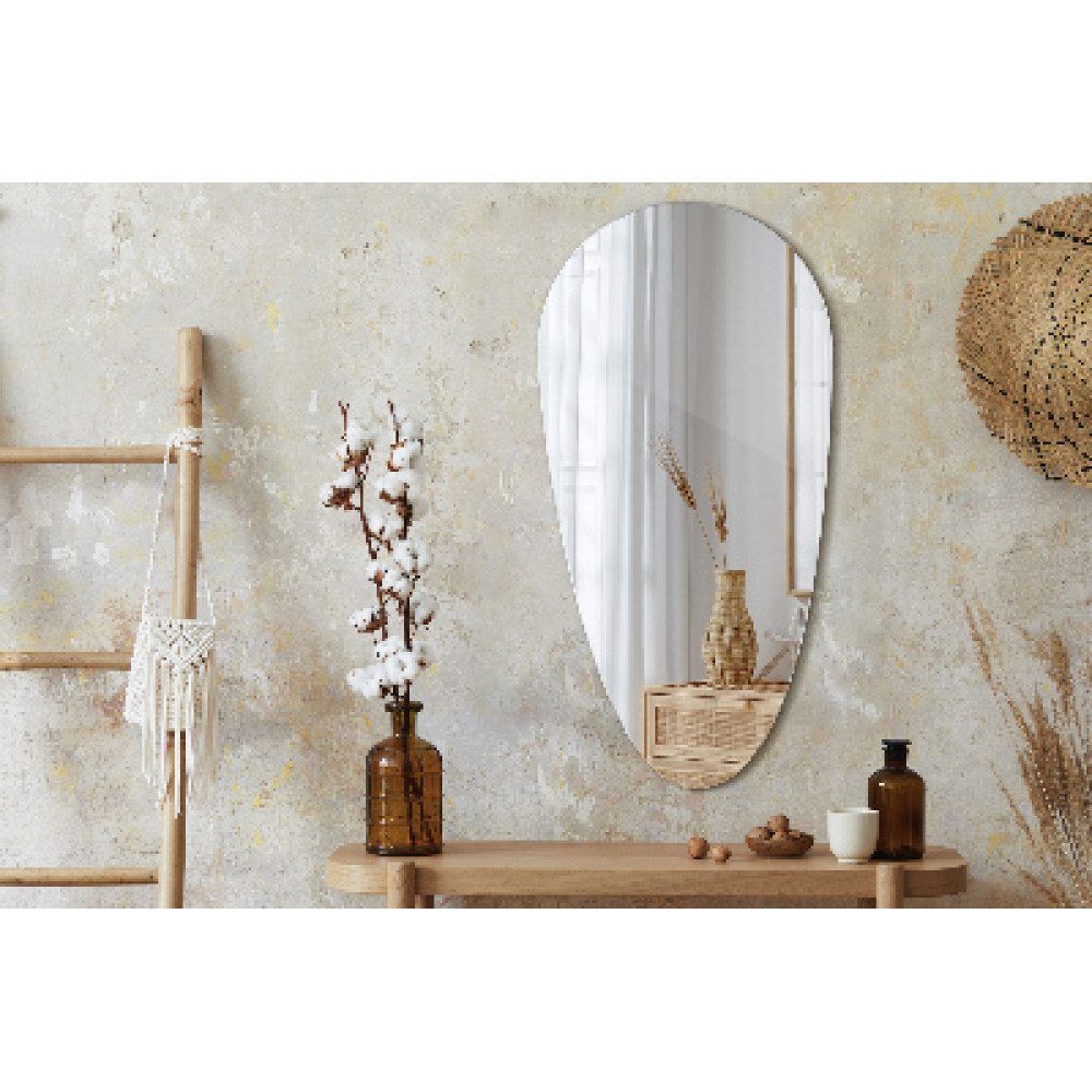 Зеркало ASM014 выполнено в форме капли, символизирующей лёгкость и природную гармонию. Отсутствие рамы и подсветки подчёркивает минималистичный стиль, делая модель универсальной для разных интерьеров. Каплевидный силуэт создаёт мягкий визуальный акцент и добавляет интерьеру оригинальности.