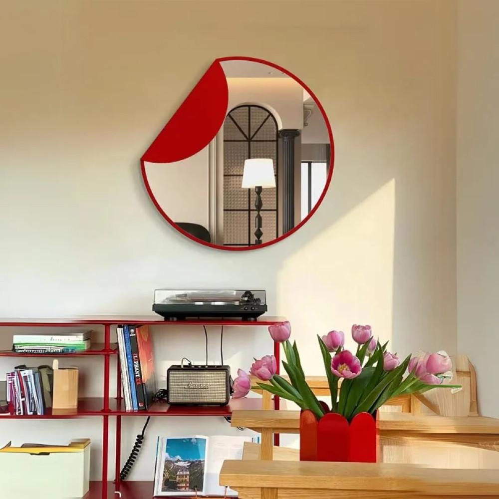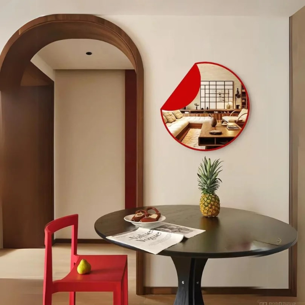 Элегантное декоративное зеркало с круглой рамой, выполненной из прочного МДФ и покрытой насыщенным красным оттенком. Универсальный дизайн делает его стильным акцентом в интерьере — будь то современная гостиная, спальня, прихожая или креативное пространство.