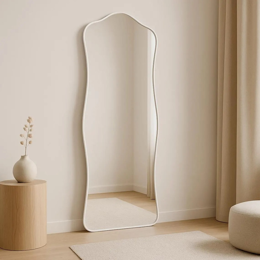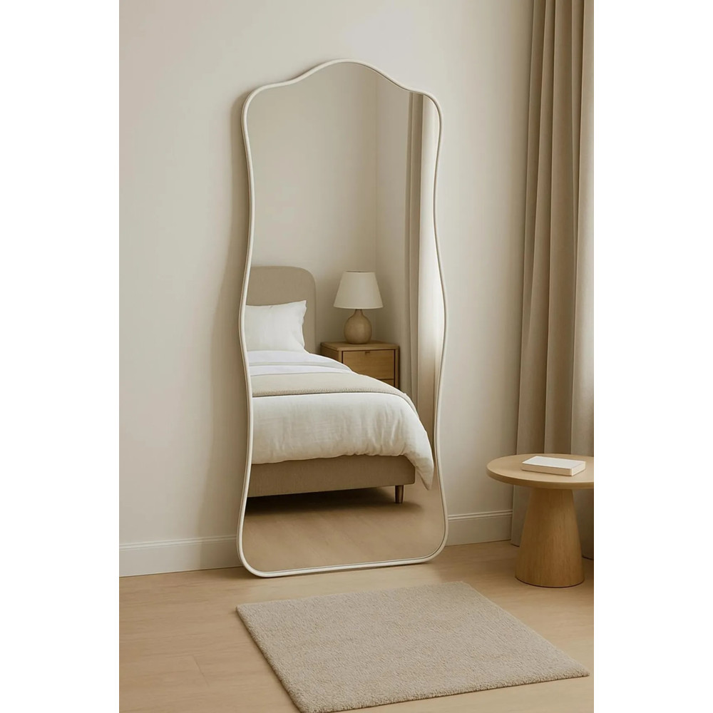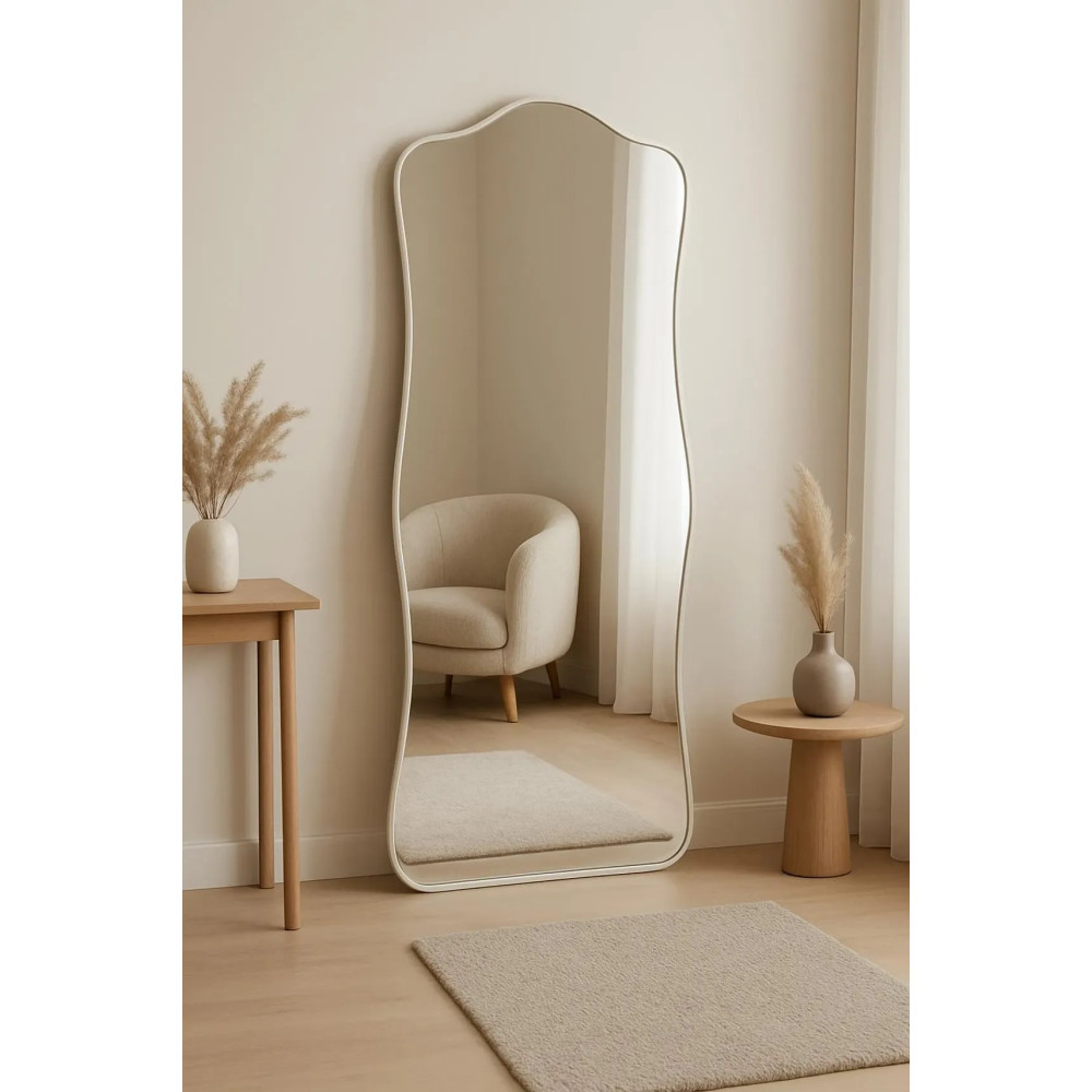 Напольное большое зеркало волнистой формы в белой раме из МДФ «Солерно»