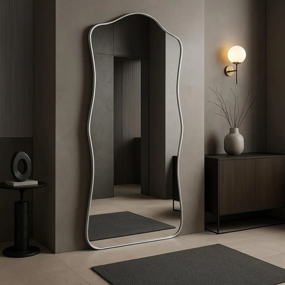 Добавьте в интерьер динамику и лёгкость с напольным зеркалом «Солерно». Его изящная волнистая форма создаёт эффект плавного движения и визуально расширяет пространство, а большая площадь зеркального полотна делает комнату светлее и просторнее.