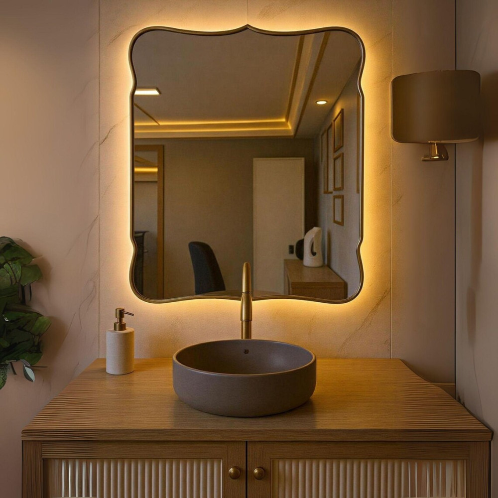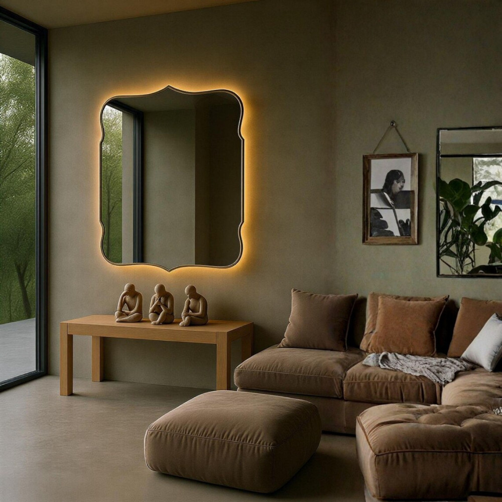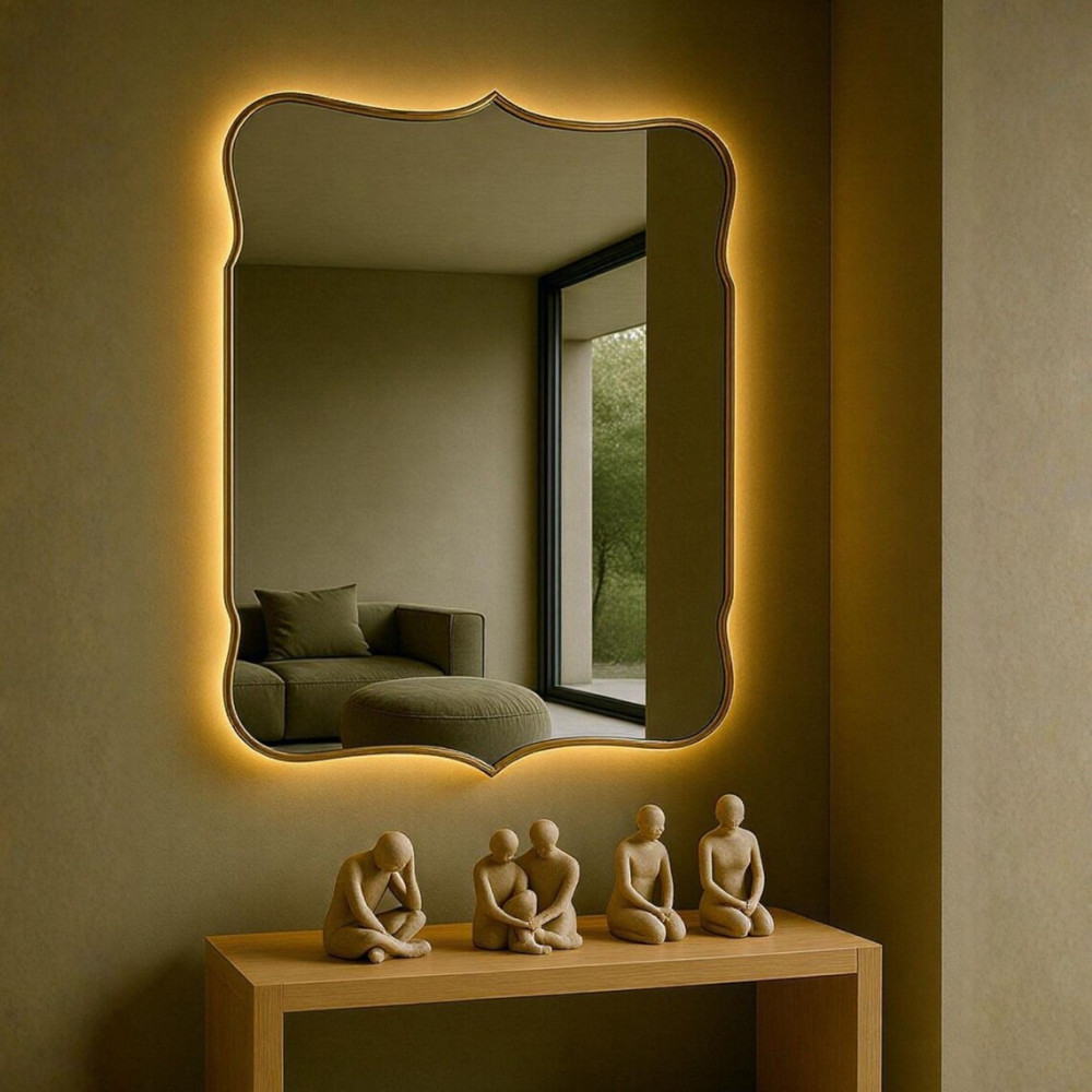 Фигурное зеркало в раме с задней интерьерной подсветкой E064