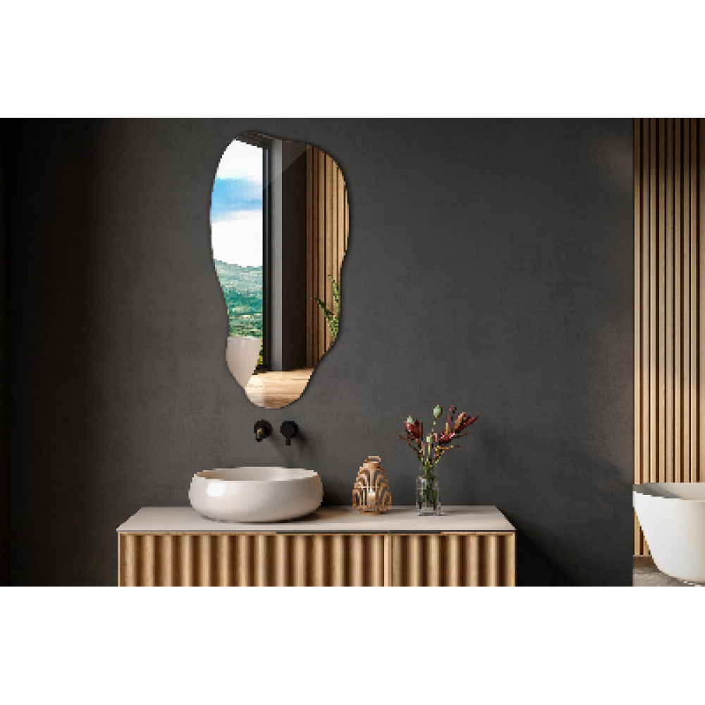 Зеркало ASM012 — это стильный элемент декора для тех, кто ценит необычные формы и лаконичность. Благодаря бесформенному силуэту оно выглядит как арт-объект, оживляя пространство и подчёркивая современный характер интерьера. Отсутствие рамы и подсветки делает модель максимально лёгкой и универсальной.