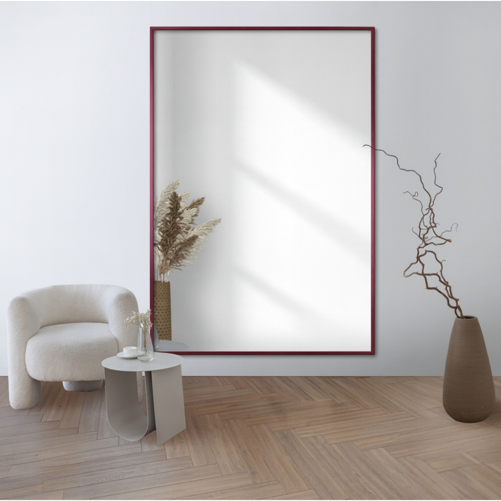 Зеркало большое настенное и напольное в полный рост в бордовой раме М010