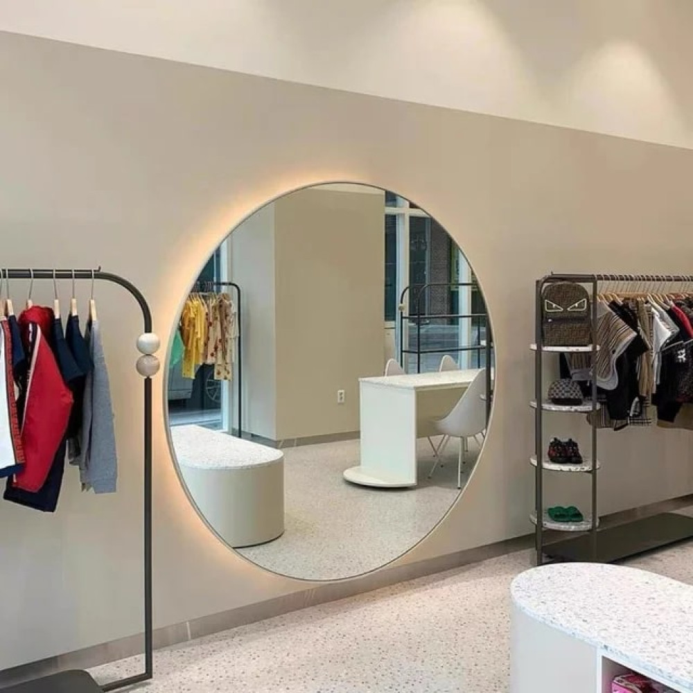 Зеркало выполнено в круглой форме, что придает ему особую изысканность и утонченность. Большое зеркало позволяет увидеть себя в полный рост, что особенно важно для тех, кто следит за своим внешним видом и стремится к совершенству.