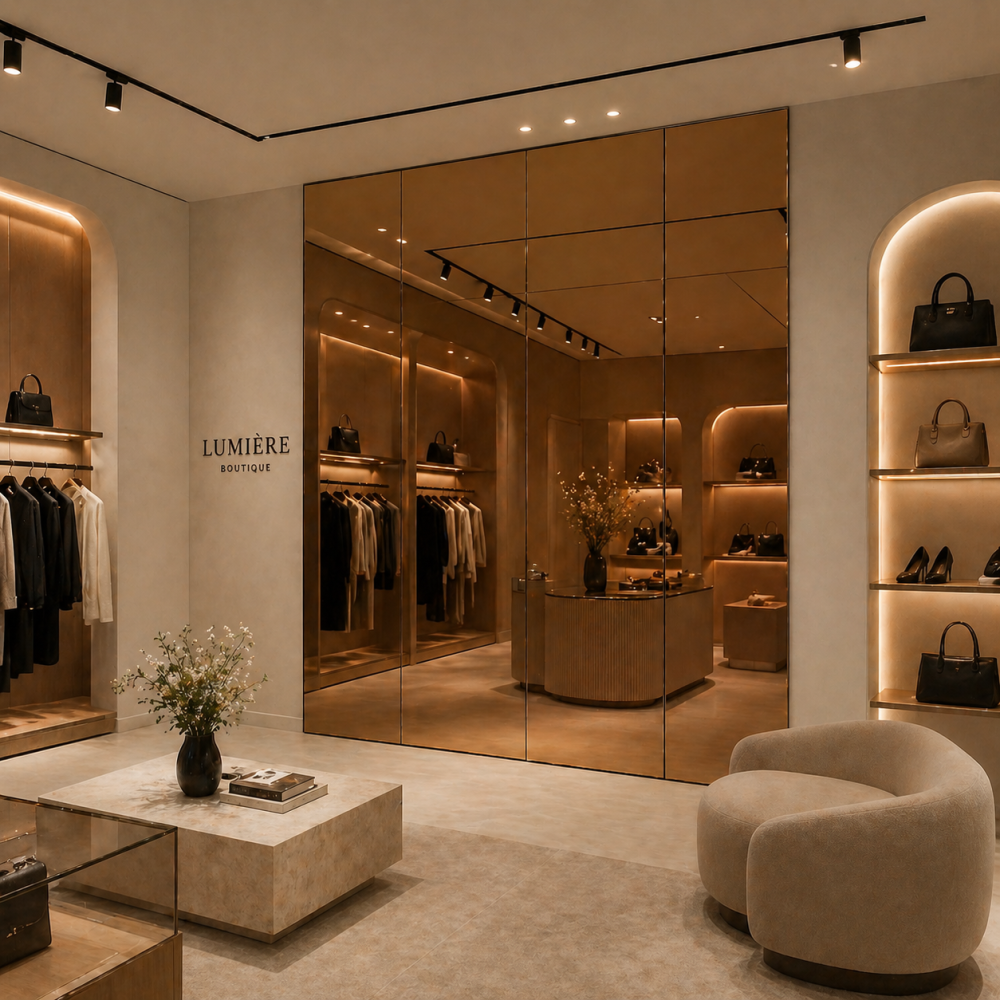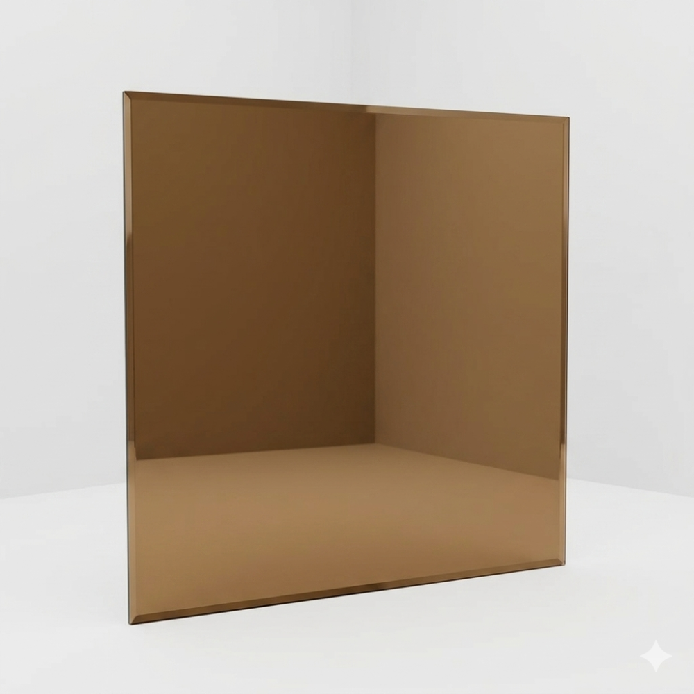 Визуальный комфорт: В отличие от обычного серебряного зеркала, бронзовое полотно дает более мягкое, «солнечное» отражение. Оно не слепит при ярком свете и делает интерьер камерным и уютным.