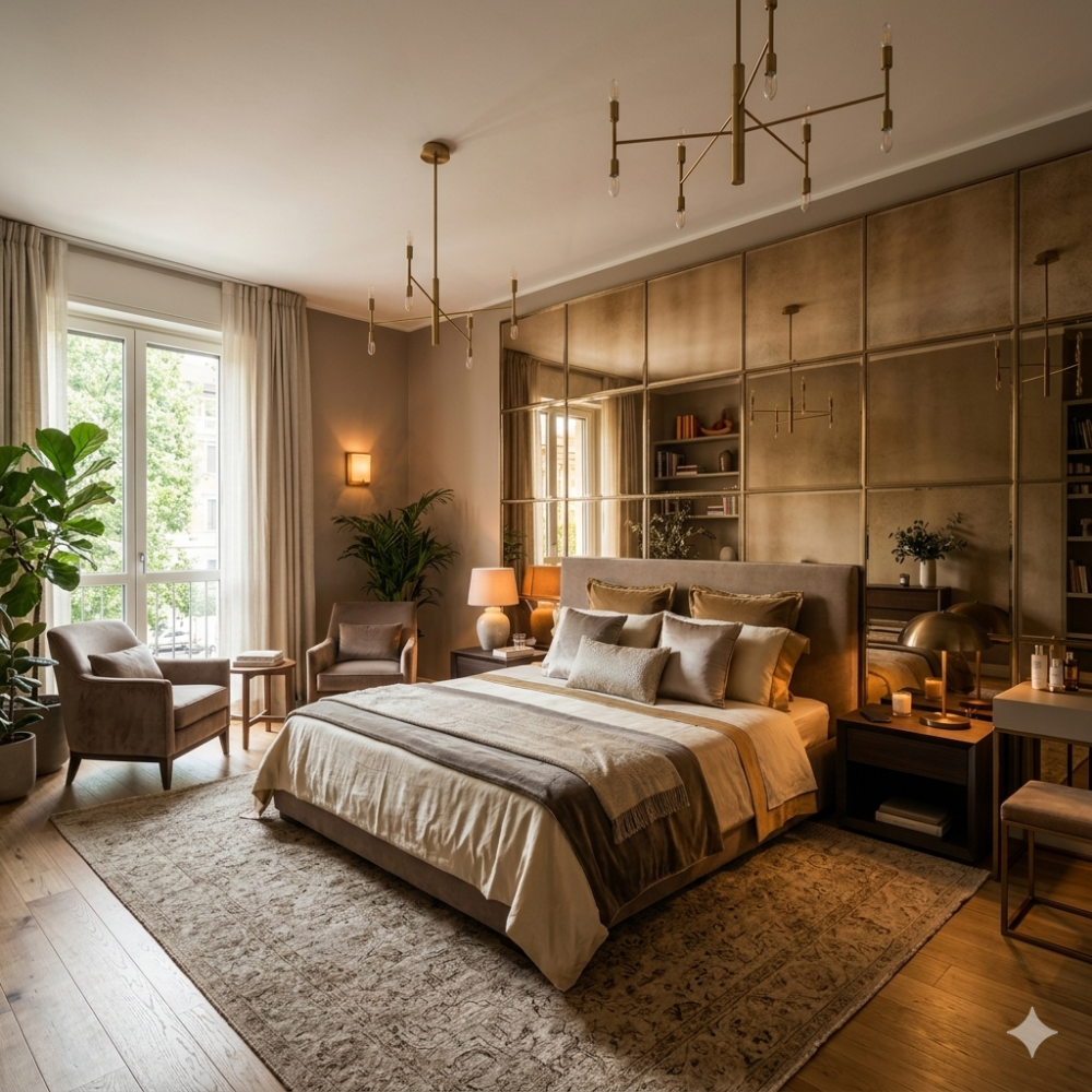 Статусность материала: Бронзовый оттенок традиционно ассоциируется с премиальными интерьерами. Он идеально сочетается с латунью, деревом ореха, темным мрамором и бархатом.