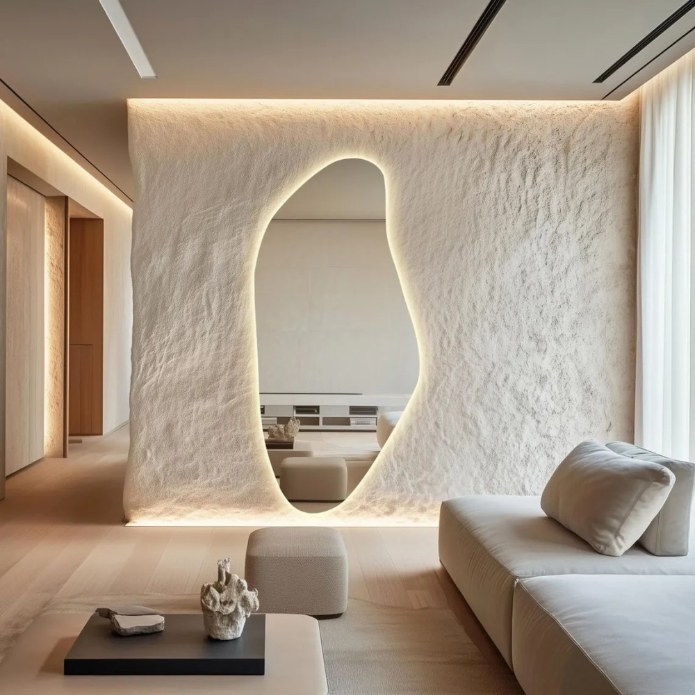 Зеркало E100 — это выразительный дизайнерский акцент, созданный для интерьеров, где важны масштаб, эстетика и современный световой дизайн. Его крупная неправильная форма делает зеркало настоящим арт-объектом, способным визуально преобразить пространство и придать ему индивидуальность.