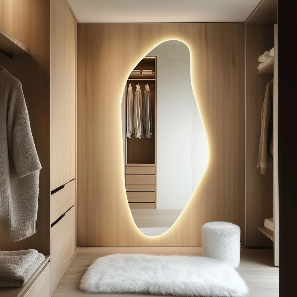 Фигурное зеркало неправильной формы большое в полный рост с фоновой подсветкой E100