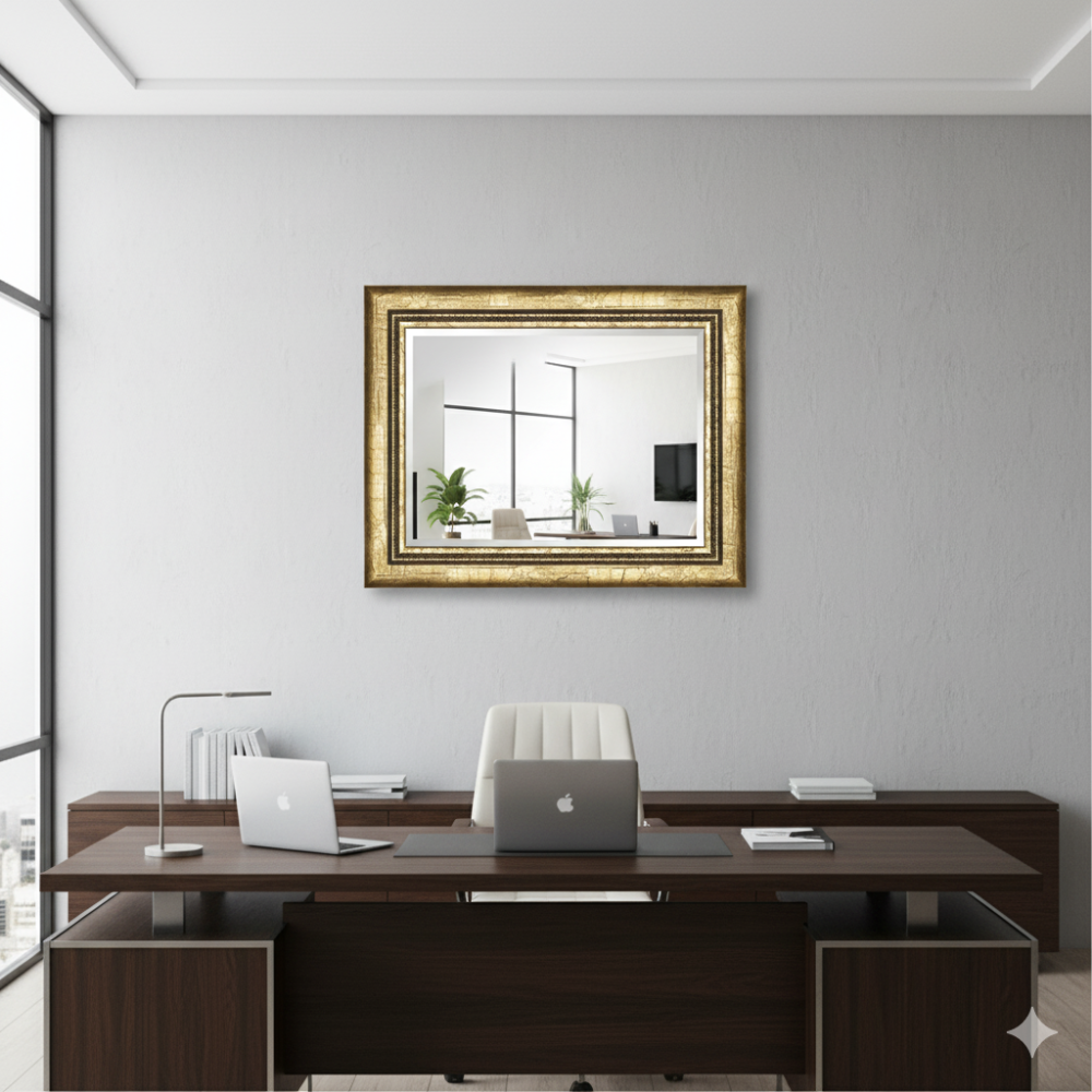 Золотая декоративная деревянная рама — изысканное оформление для утончённых интерьеров.