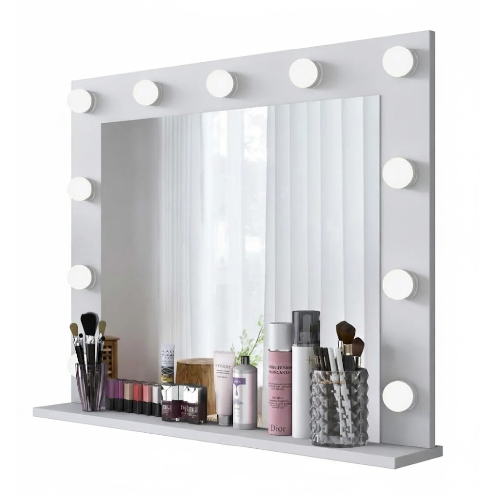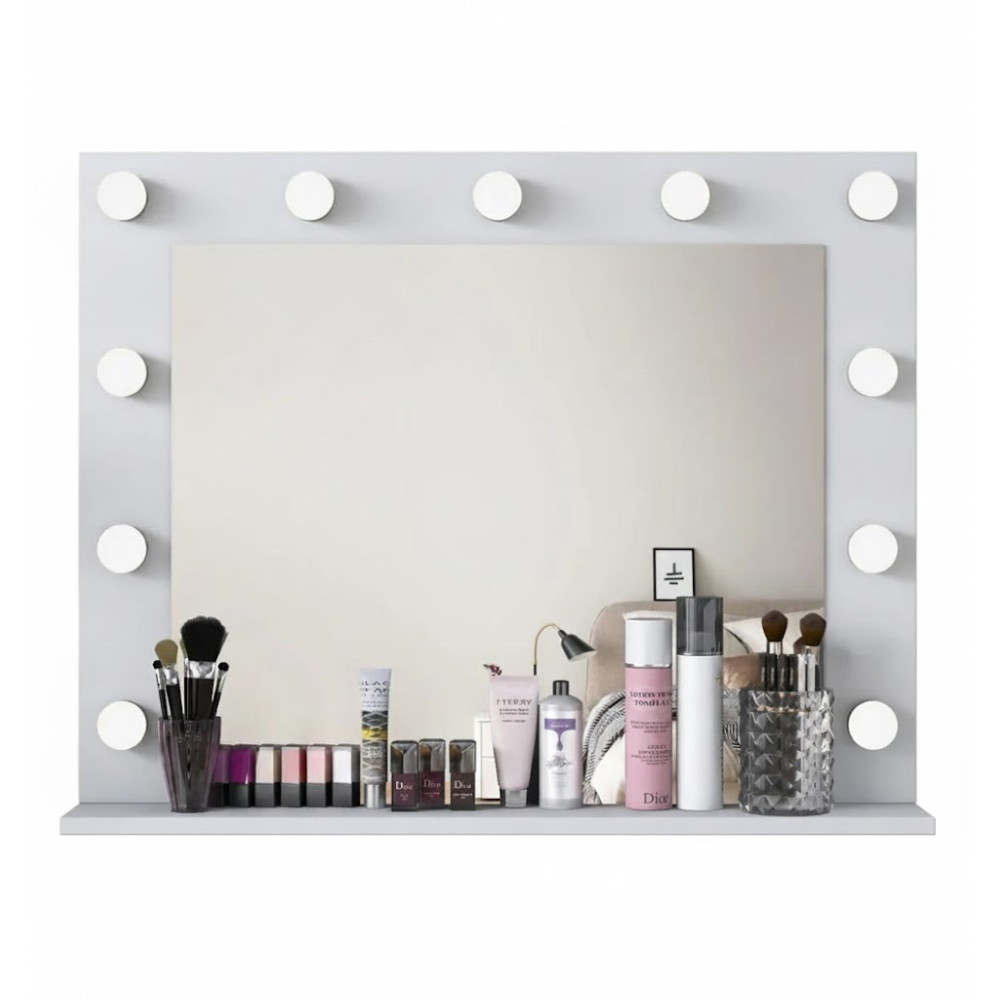 Гримерное зеркало «Камерон» — это идеальное решение для тех, кто ценит профессиональный свет, стильный дизайн и удобство в ежедневных бьюти-процедурах. Классическая световая рамка из лампочек обеспечивает яркое, ровное и исключительное по качеству освещение, которое идеально подходит для макияжа, укладки, съёмок и работы с образом.
