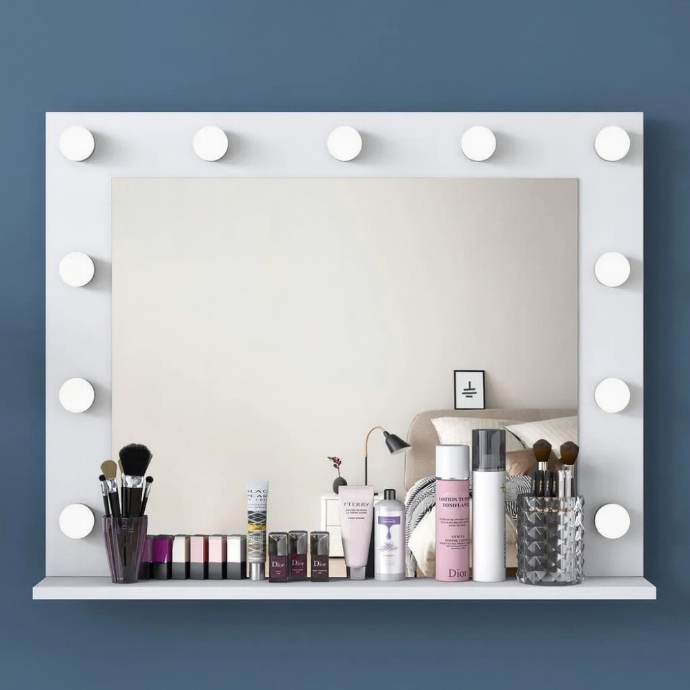 Гримерное зеркало в белой раме с подсветкой лампочками «Камерон»
