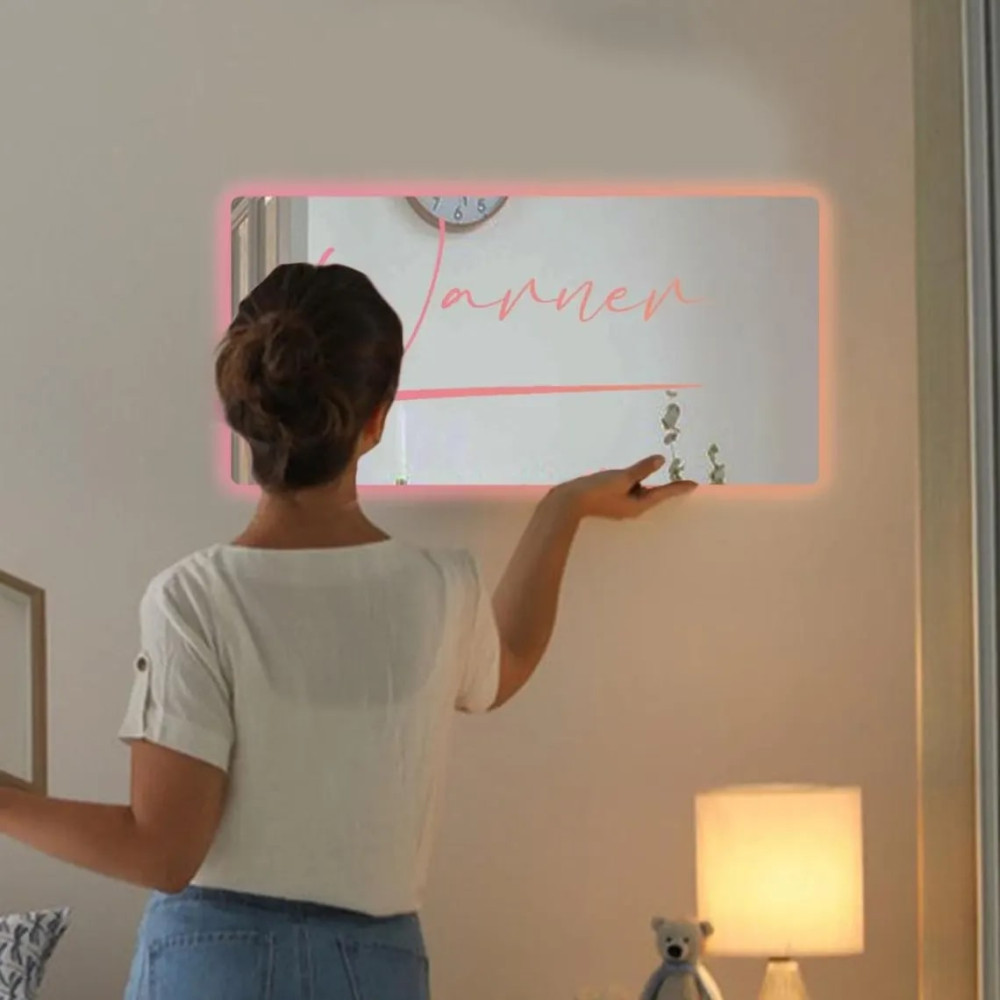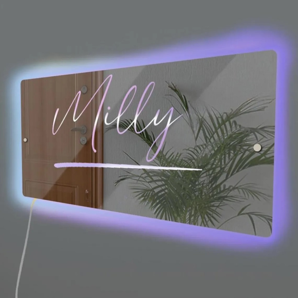 Именное зеркало с фоновой неоновой RGB-подсветкой E058