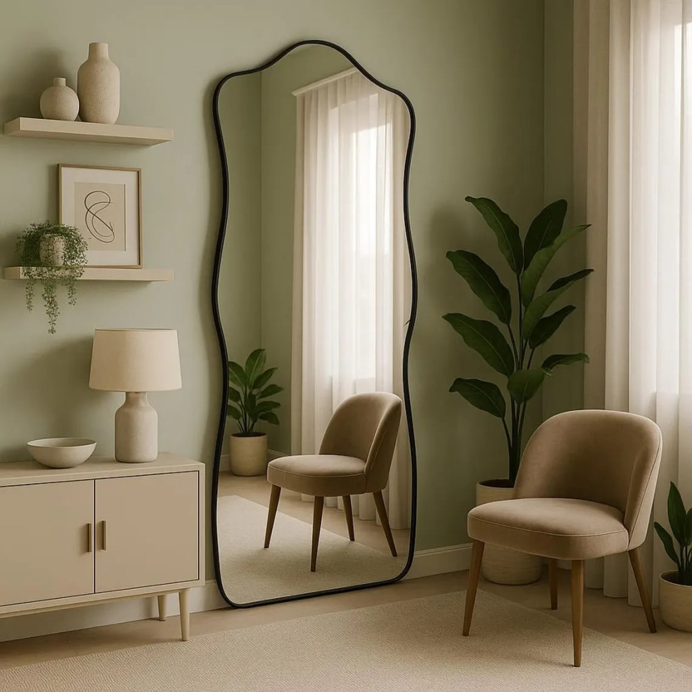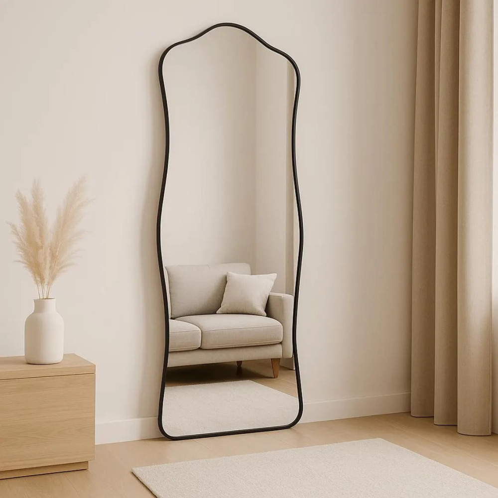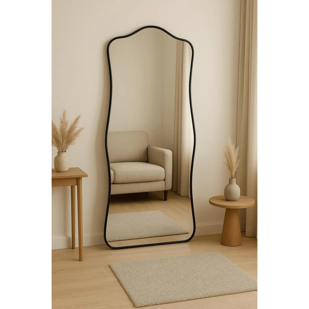 Напольное большое зеркало волнистой формы в чёрной раме из МДФ «Солерно»