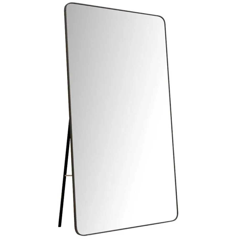 Зеркало напольное большое в полный рост на подставке-ноге в чёрной раме с закруглёнными углами MM020