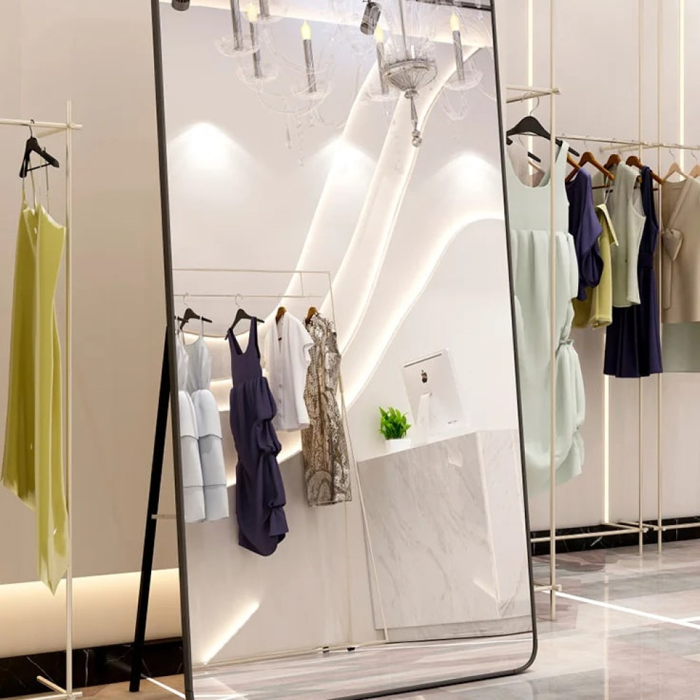 Зеркало MM020 — стильное напольное зеркало в полный рост, которое станет ярким акцентом в современном интерьере. Оно выполнено в прочной чёрной раме из МДФ с изящными закруглёнными углами, что придаёт модели элегантность и мягкость форм.