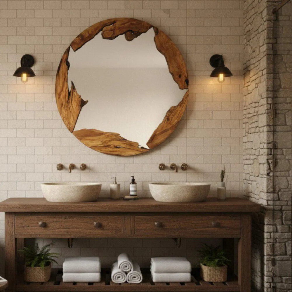 Ванная комната: придаёт интерьеру теплоту и натуральность, особенно в сочетании с деревянными аксессуарами.