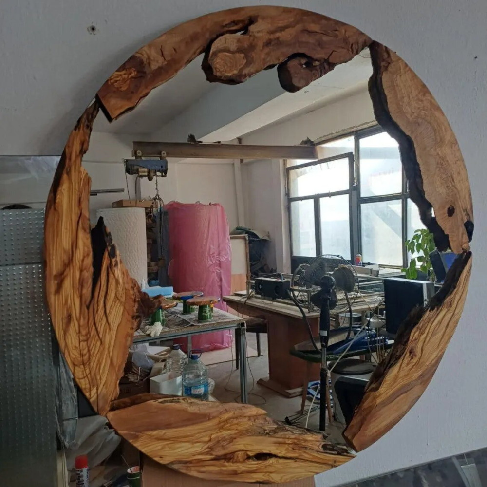 Круглое зеркало в декоративной древесной раме ручной работы MS004