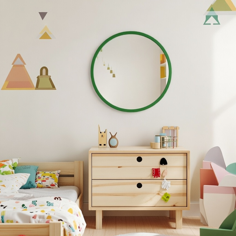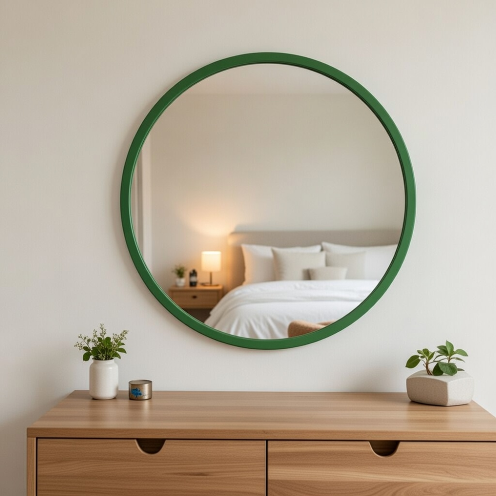 Круглое настенное зеркало «Эва» в раме из МДФ (Зеленый)