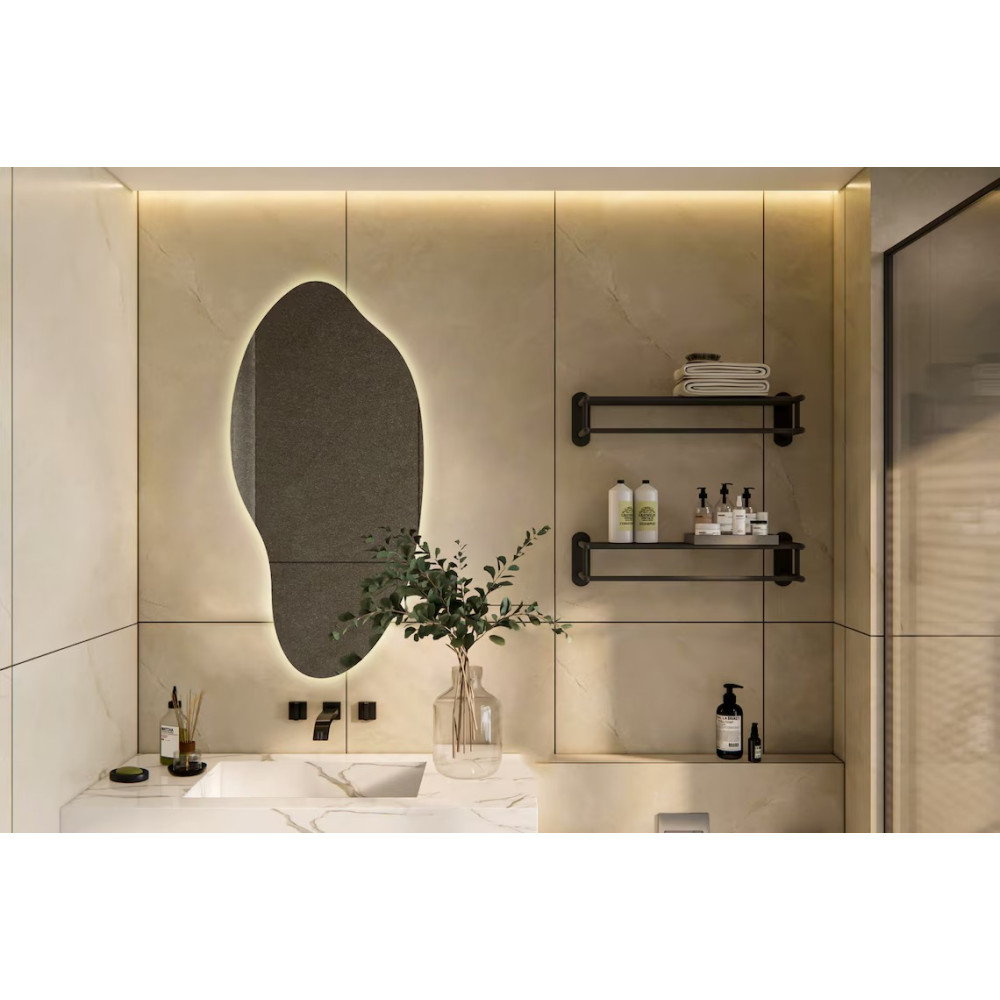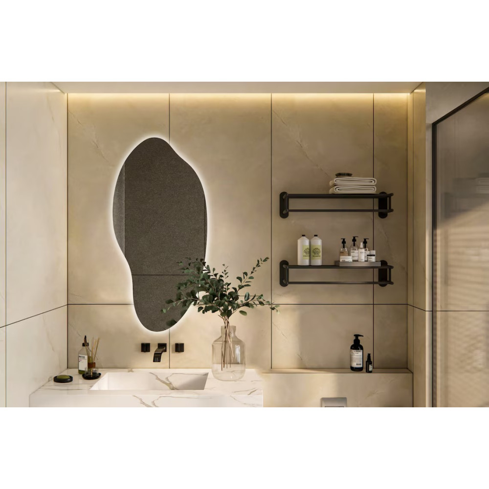 Зеркало Астор — смелый дизайнерский акцент, объединяющий необычную форму и выразительное световое оформление. Его нестандартная плавная форма создаёт динамику и уникальность интерьера, а задняя Ambilight LED-подсветка формирует глубокий световой ореол с эффектом парения, наполняя пространство атмосферным мягким сиянием.
