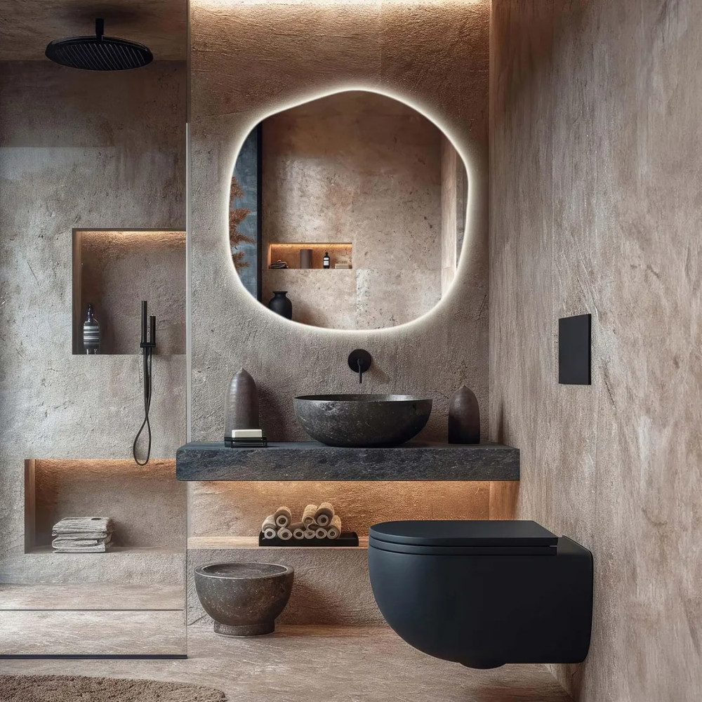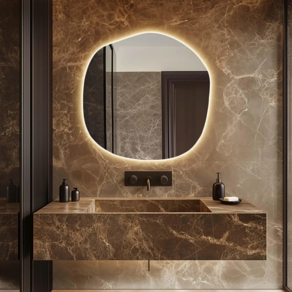 Зеркало ASM010 — это современный акцент для интерьера, который сочетает функциональность и оригинальный дизайн. Его асимметричная форма подчёркивает динамику пространства, а задняя фоновая LED-подсветка создаёт мягкое свечение, визуально «отрывающее» зеркало от стены и добавляющее объём комнате.