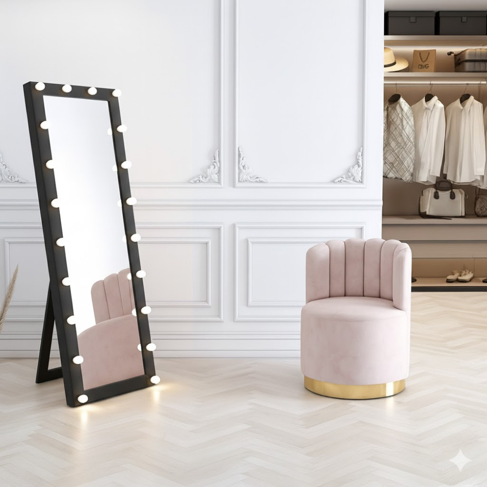 Создайте свой идеальный уголок красоты с напольным гримерным зеркалом «Ледио». Этот стильный аксессуар не только поможет в создании безупречного образа, но и станет элегантным элементом вашего интерьера.