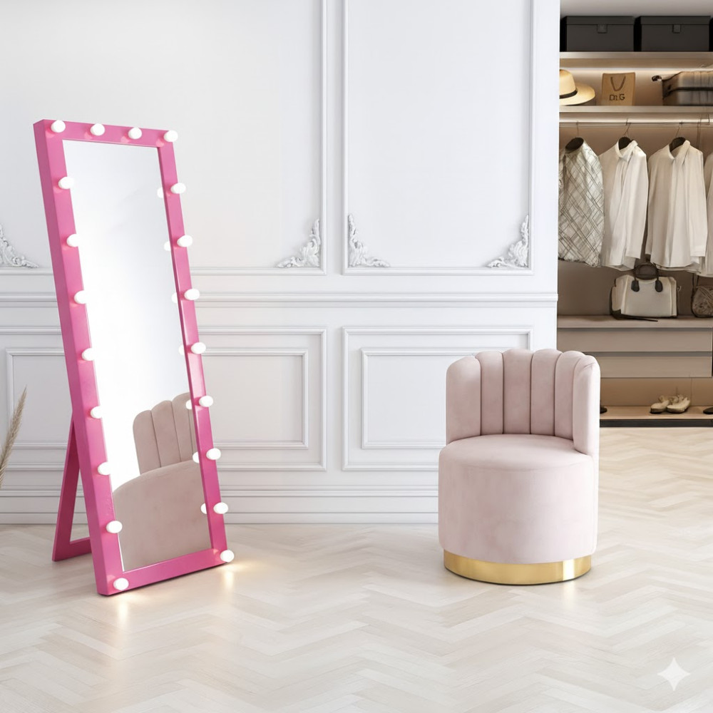 Напольное гримерное зеркало «Ледио» в розовой раме из МДФ с металлической опорой