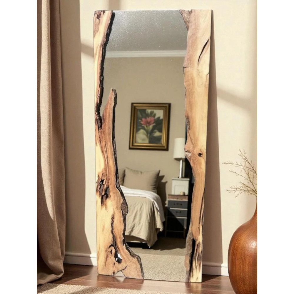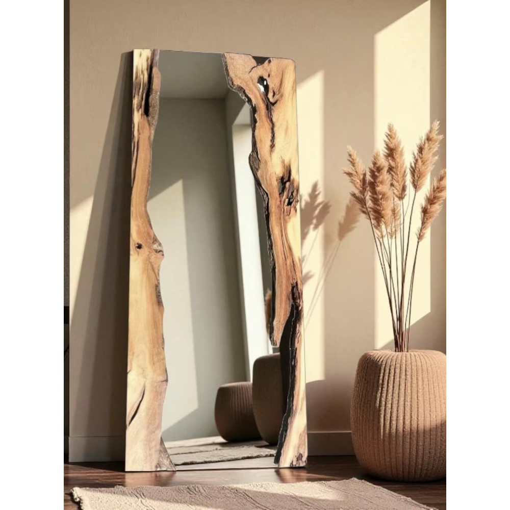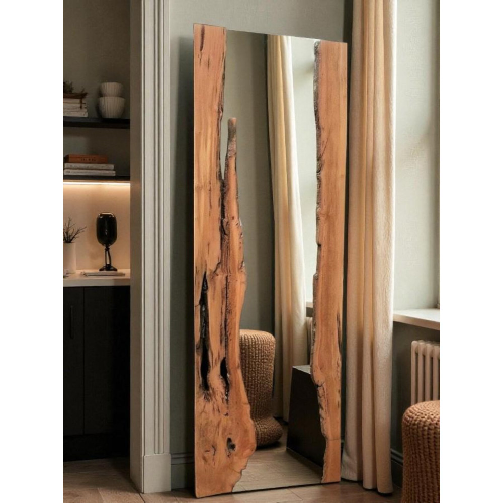 Модель MS007 — это зеркало с характером. Оно создано для тех, кто устал от пластикового глянца и ищет настоящие, "честные" материалы. Массивная рама с выраженной текстурой дерева превращает функциональный предмет в мощный декоративный элемент, напоминающий об эстетике альпийских шале и загородных поместий.