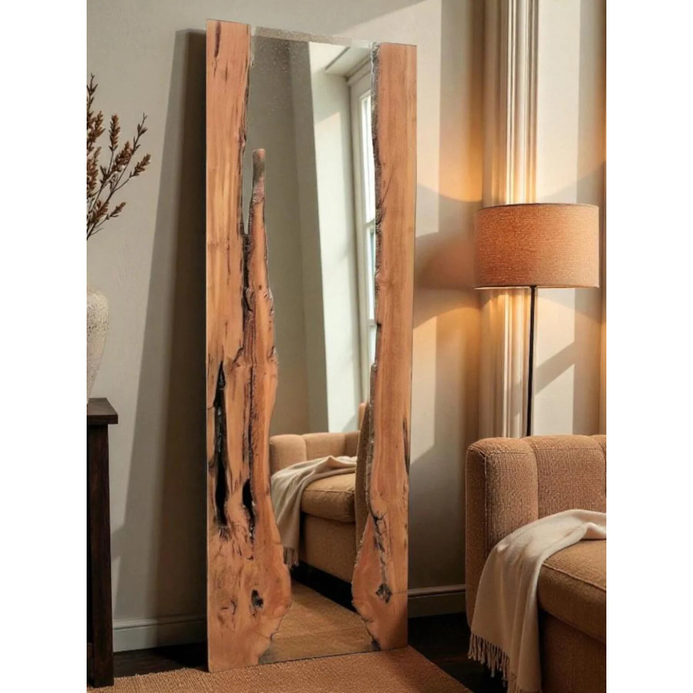 Напольное и настенное большое зеркало в полный рост в деревенском силе с декором из массива дерева MS007