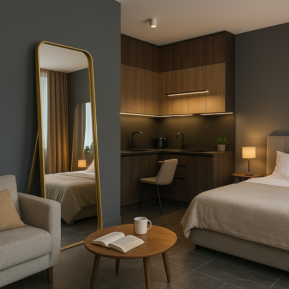 Дополните интерьер другими предметами из нашей коллекции, чтобы создать гармоничное и стильное пространство. Это зеркало — не просто функциональный элемент, а изысканная деталь, подчеркивающая ваш вкус.