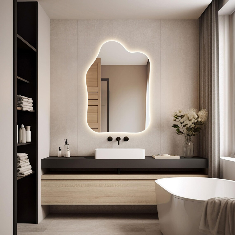Зеркало E082 — настенное асимметричное светодиодное зеркало