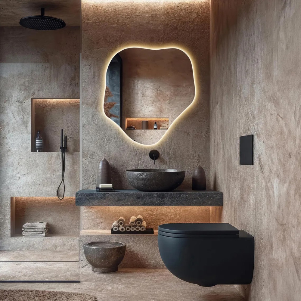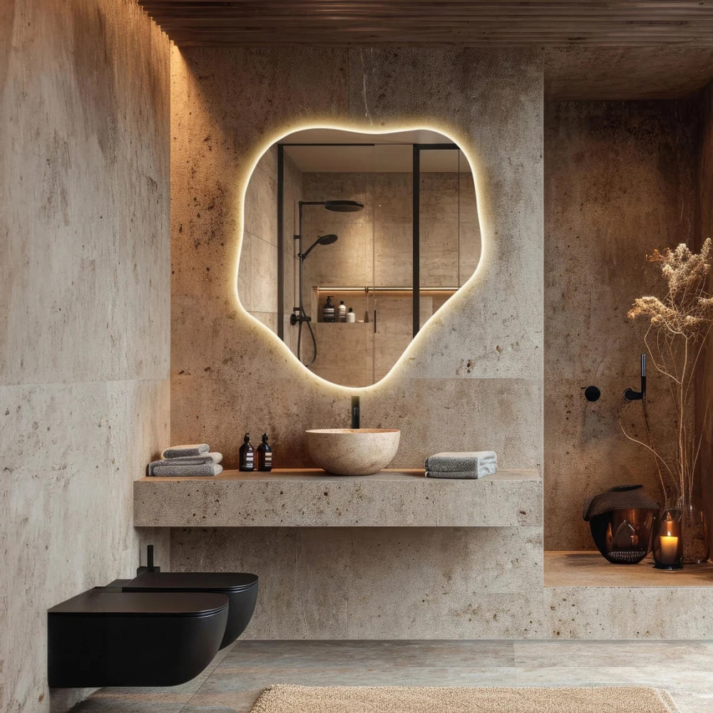 Зеркало E093 — настенное декоративное зеркало неправильной формы с задней фоновой подсветкой