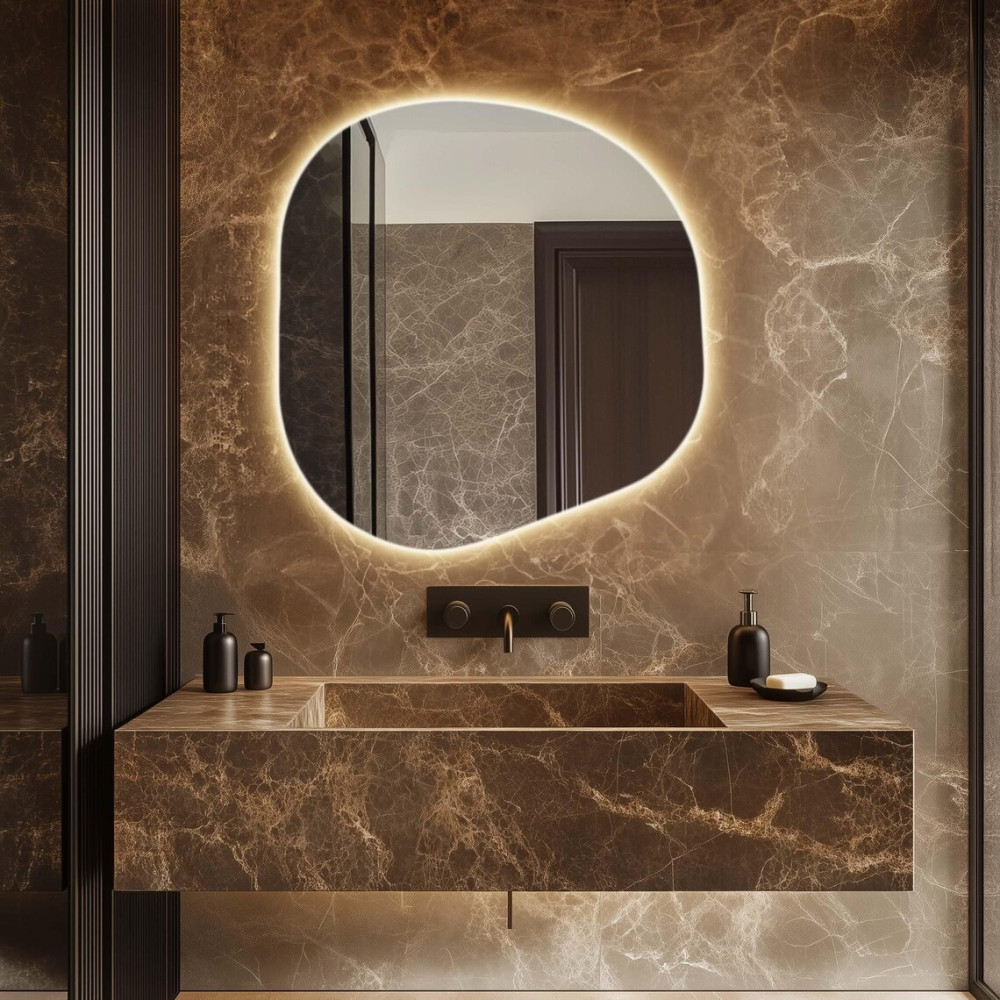 Мягкая задняя фоновая LED-подсветка подчёркивает необычный контур и создаёт эффект лёгкого «парения» зеркала. Световое сияние добавляет интерьеру глубину, уют и визуальную лёгкость, делая его более современным и выразительным.