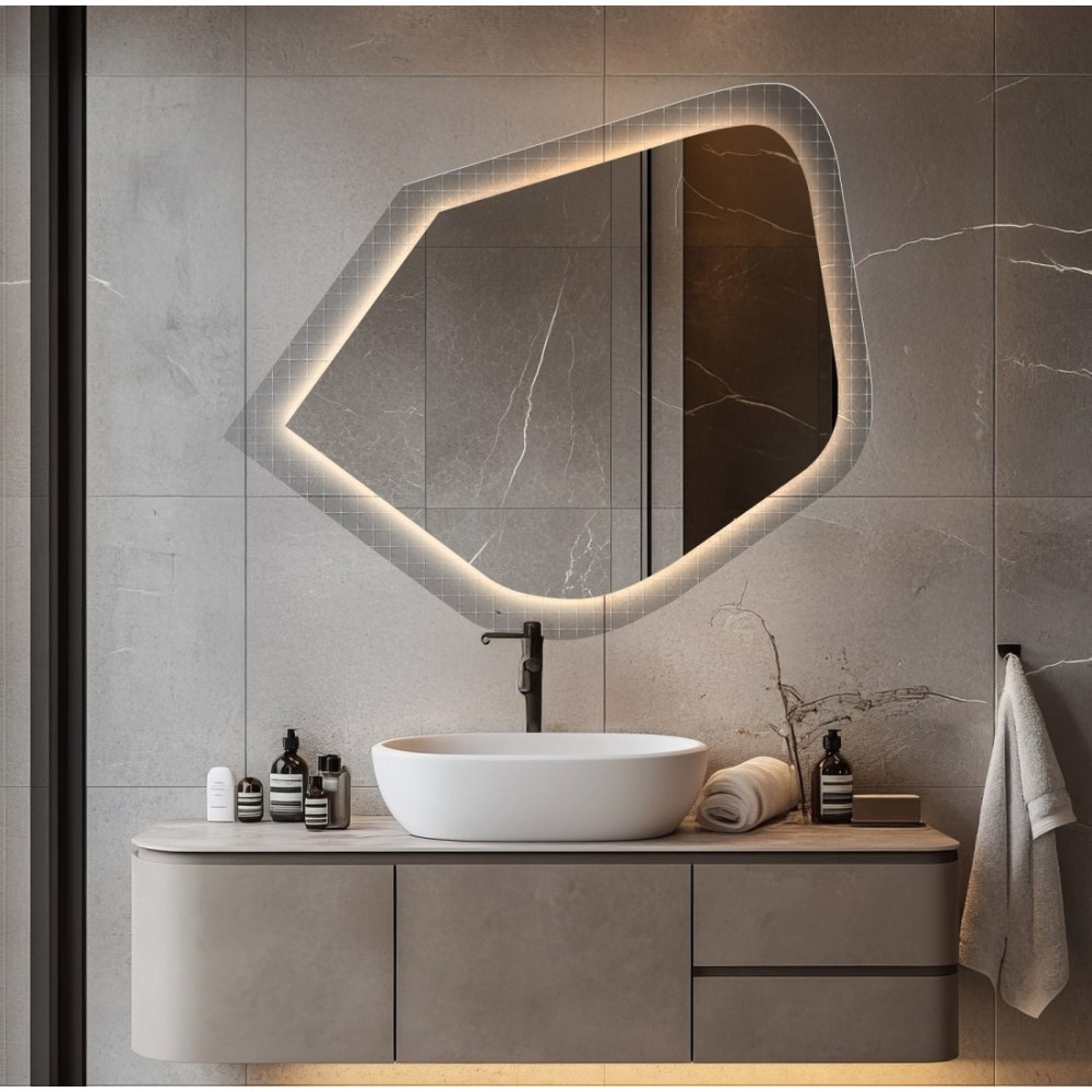 Настенное дизайнерское декоративное зеркало на армированном стекле с задней фоновой подсветкой AG001