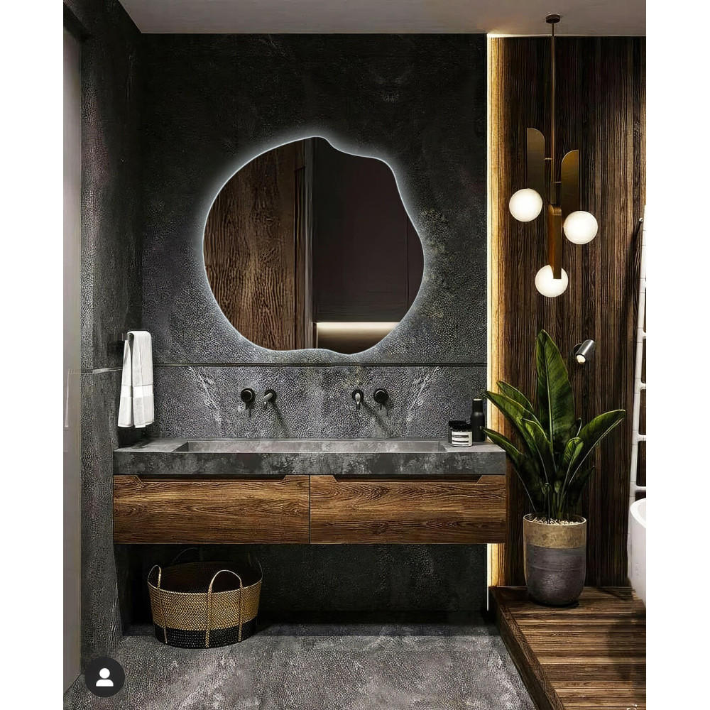 Зеркало E048 — стильный элемент современного интерьера, вдохновлённый плавными природными линиями. Его волнистая форма создаёт мягкую динамику и визуальную лёгкость, а фоновая LED-подсветка добавляет нежное рассеянное свечение и эффект парения, подчёркивая эстетику зеркала и расширяя пространство.