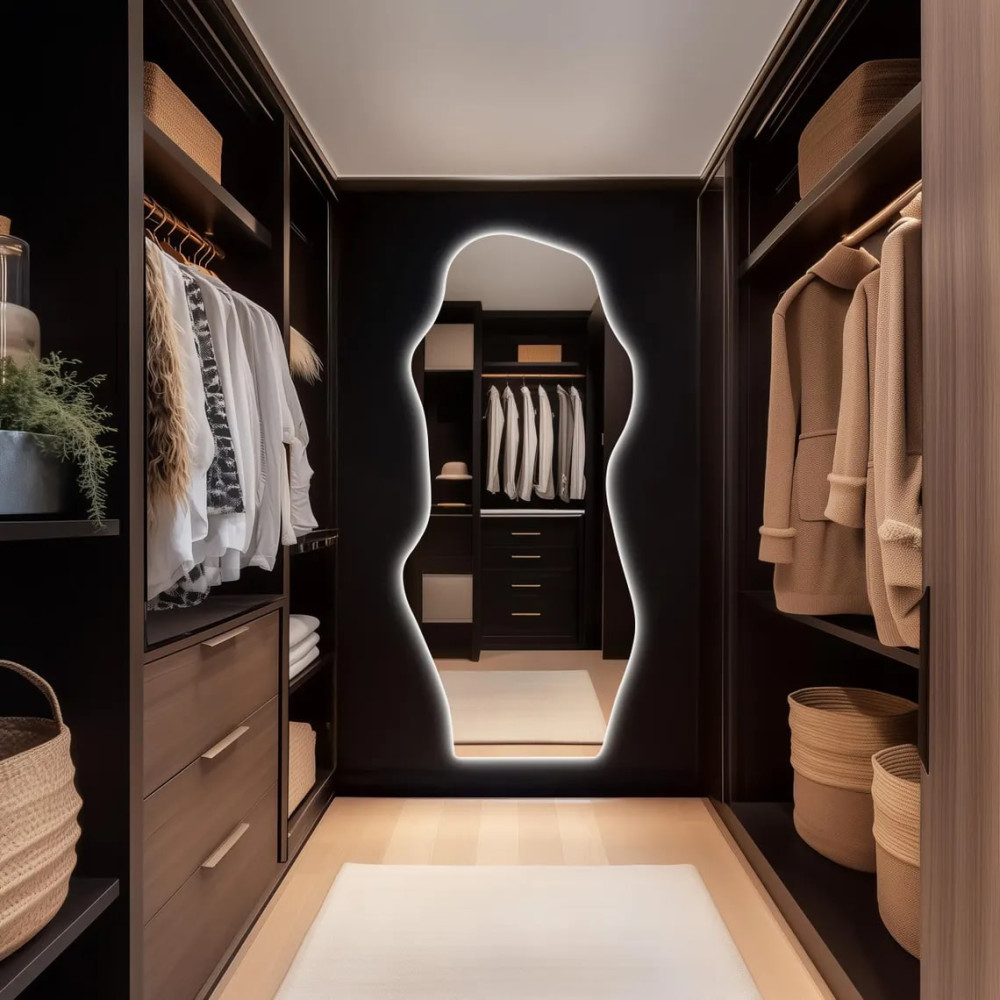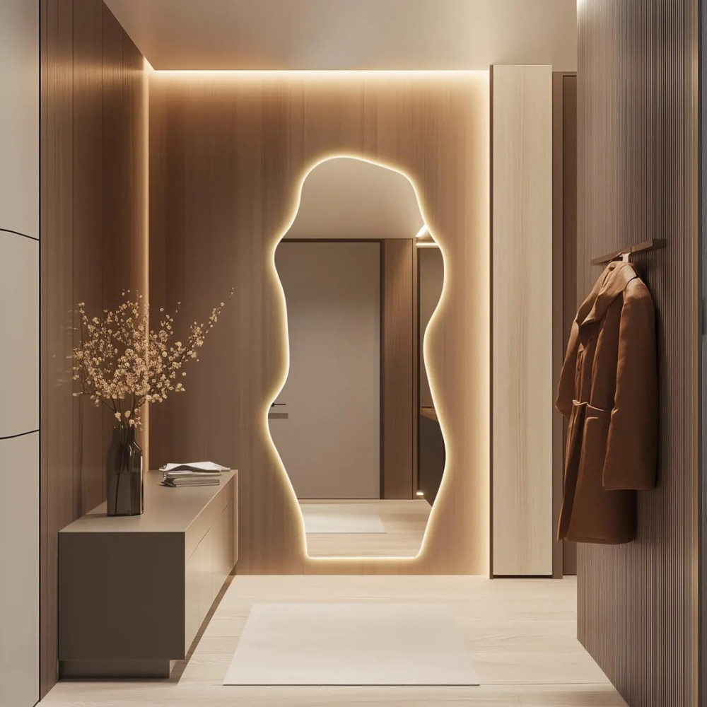 Модель подходит как для настенного, так и для напольного размещения, что делает её универсальной для любого интерьера — спальни, гардеробной, прихожей, гостиной, бутика или салона красоты.