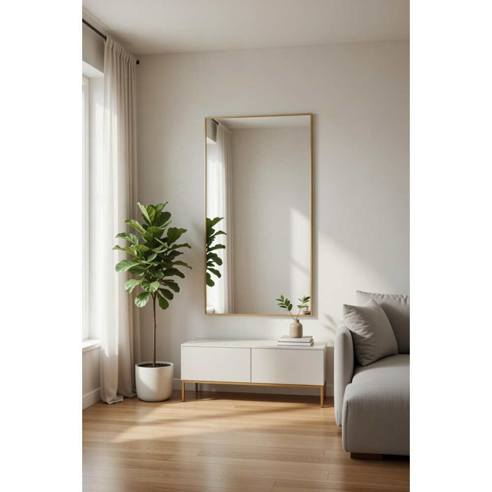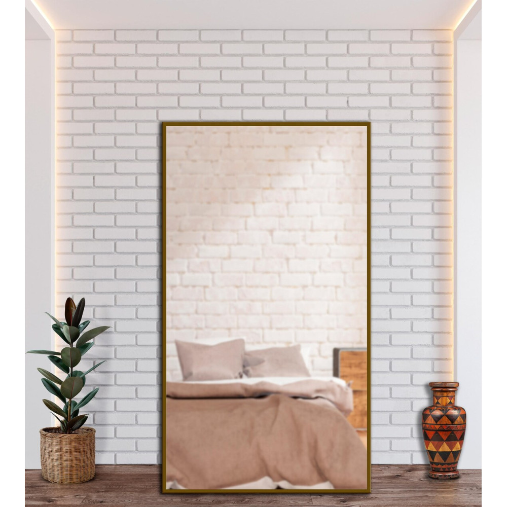 Настенное и напольное большое зеркало в полный рост в латунной раме Амбер Лайт