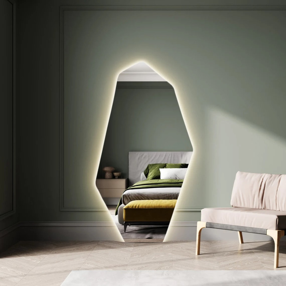 Большое настенное и напольное семиугольное зеркало в полный рост с интерьерной подсветкой по периметру E039