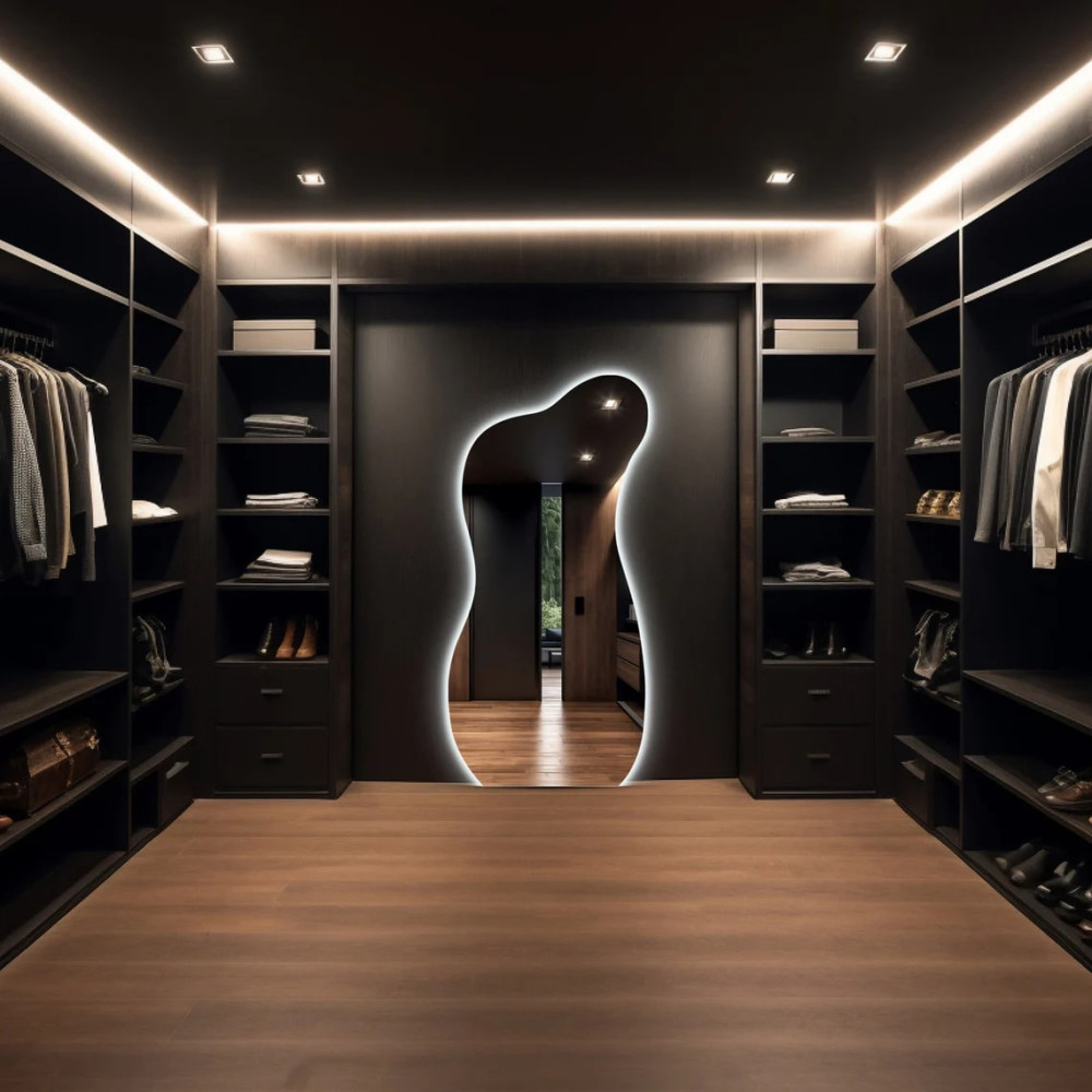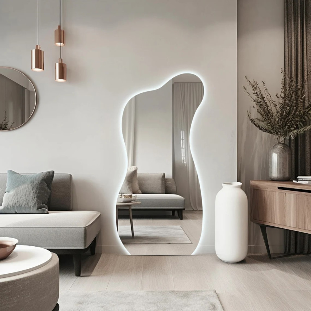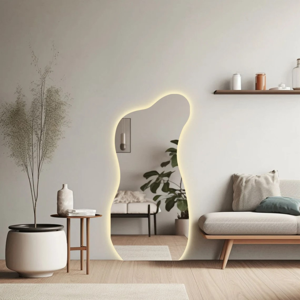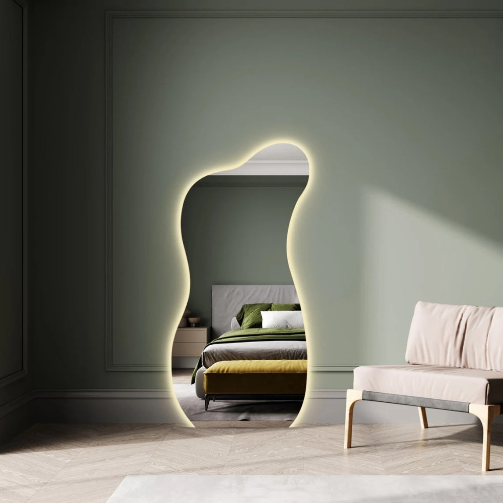 Настенное и напольное зеркало неправильной формы в полный рост с задней подсветкой E026