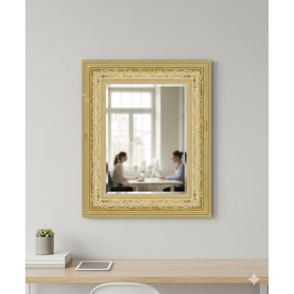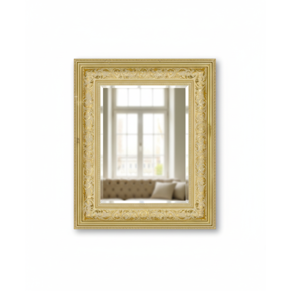 Зеркало Азалия 002 с фацетом в золотой классической раме с бежевым оттенком