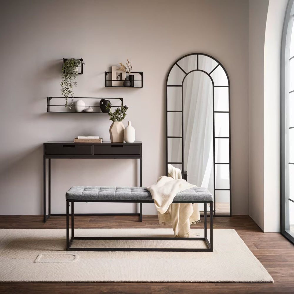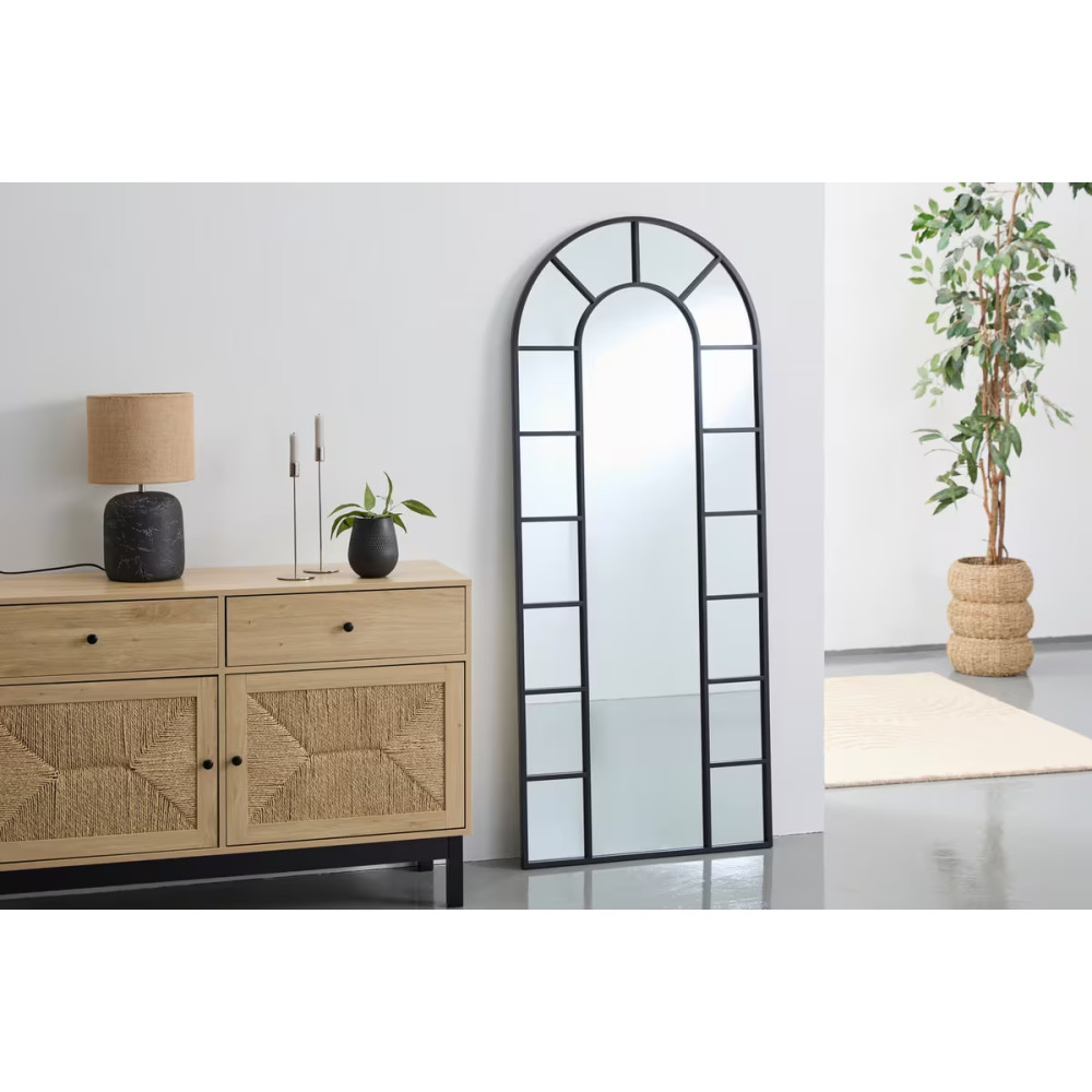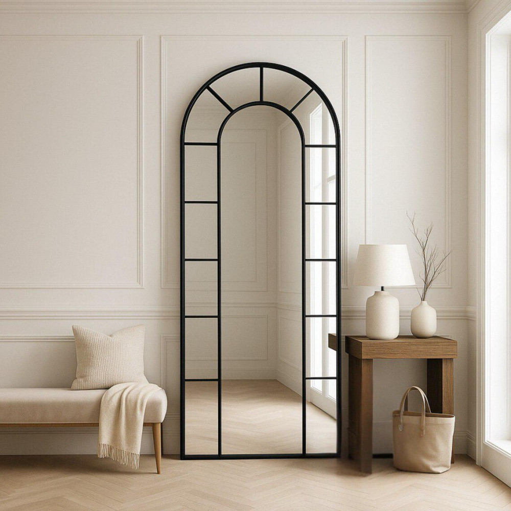 Напольное и настенное зеркало в виде окна арочной формы в чёрной раме Орнелла 005