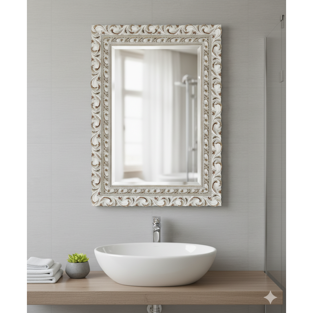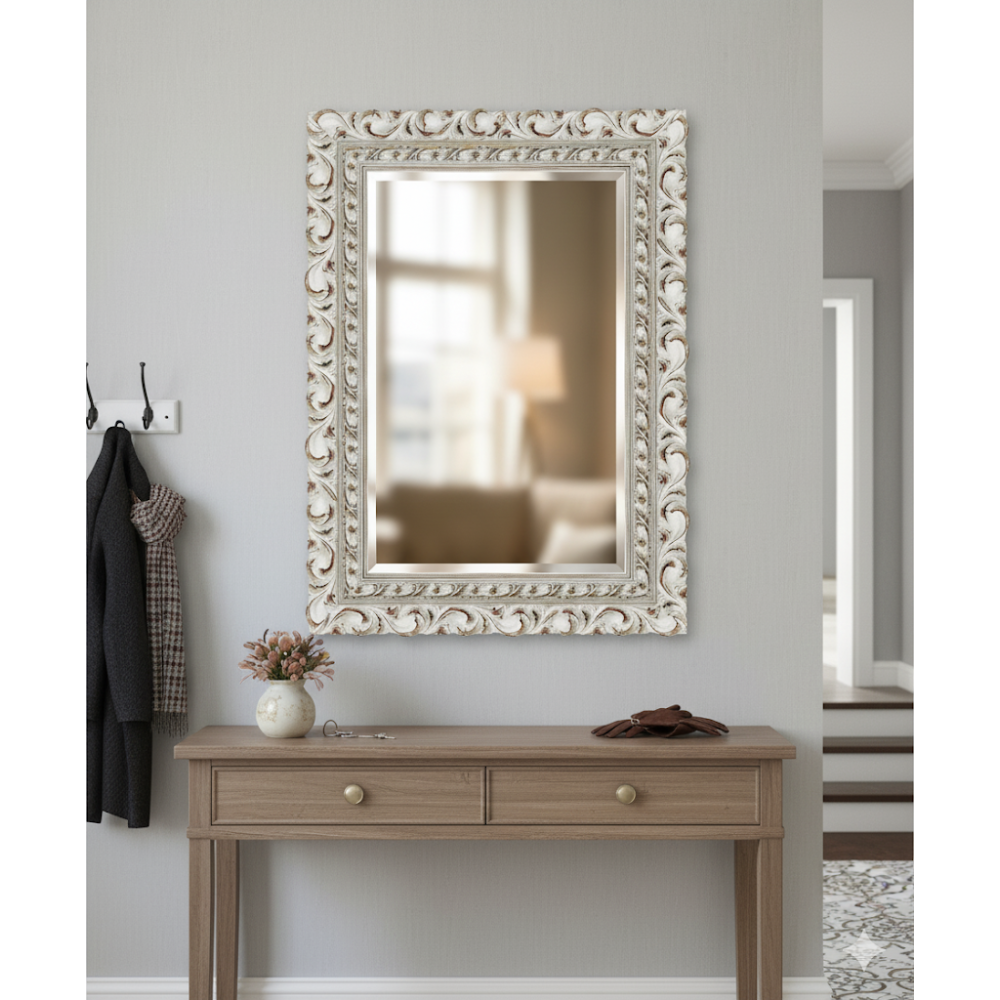 Зеркало Пацифик 005 выполнено в классическом стиле и оформлено в белой декоративной раме из дерева. Благодаря фацетной обработке края зеркала выглядят более выразительно, а игра света создаёт дополнительный объём и блеск. Такая модель универсальна и идеально подойдёт как для светлых современных интерьеров, так и для классических пространств.
