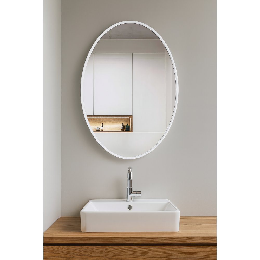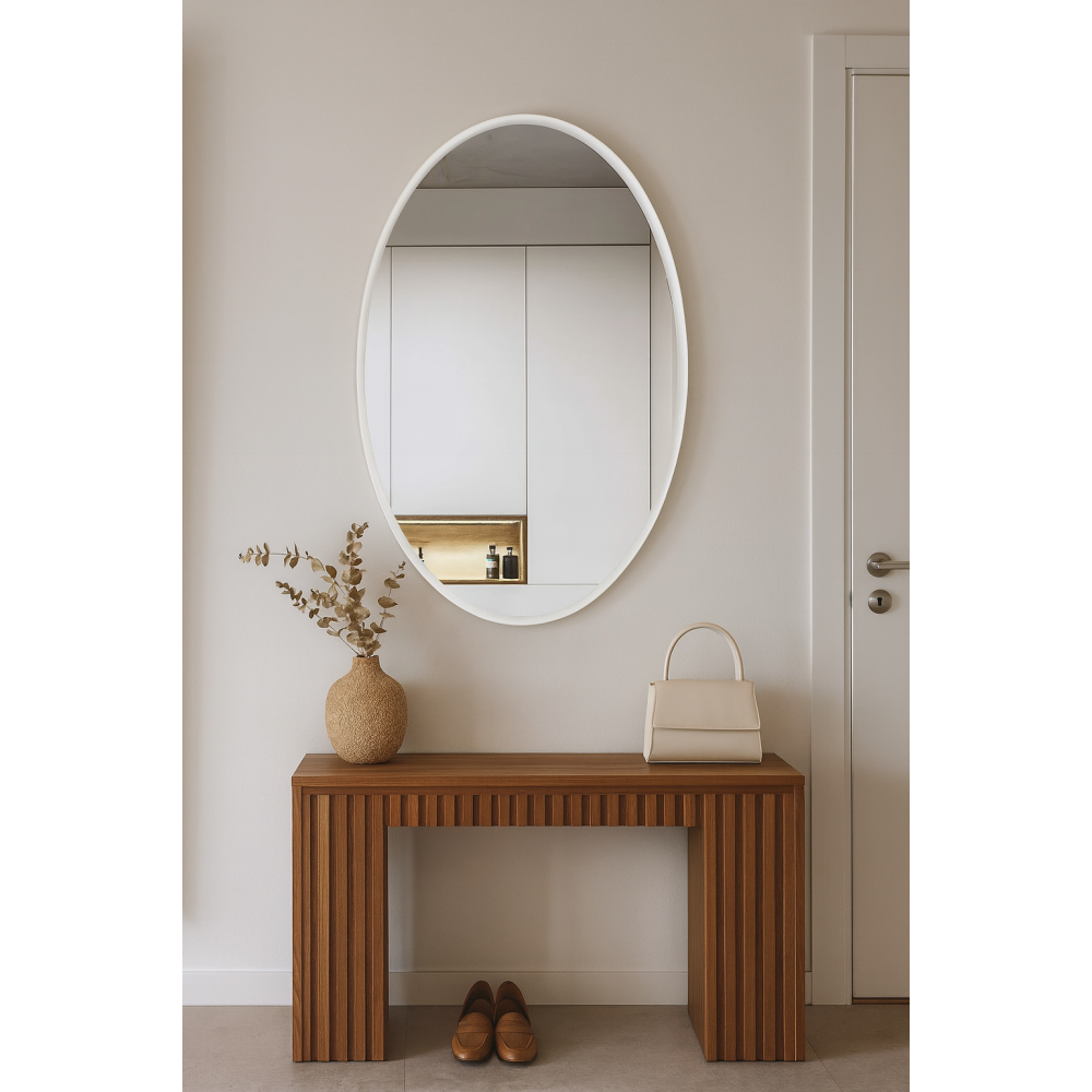 Зеркало Каролина — элегантная модель в овальной форме, оформленная в белой раме из МДФ. Лаконичный дизайн и светлый оттенок придают интерьеру свежесть, лёгкость и гармонию. Это зеркало станет не только функциональным элементом, но и стильным акцентом в пространстве.