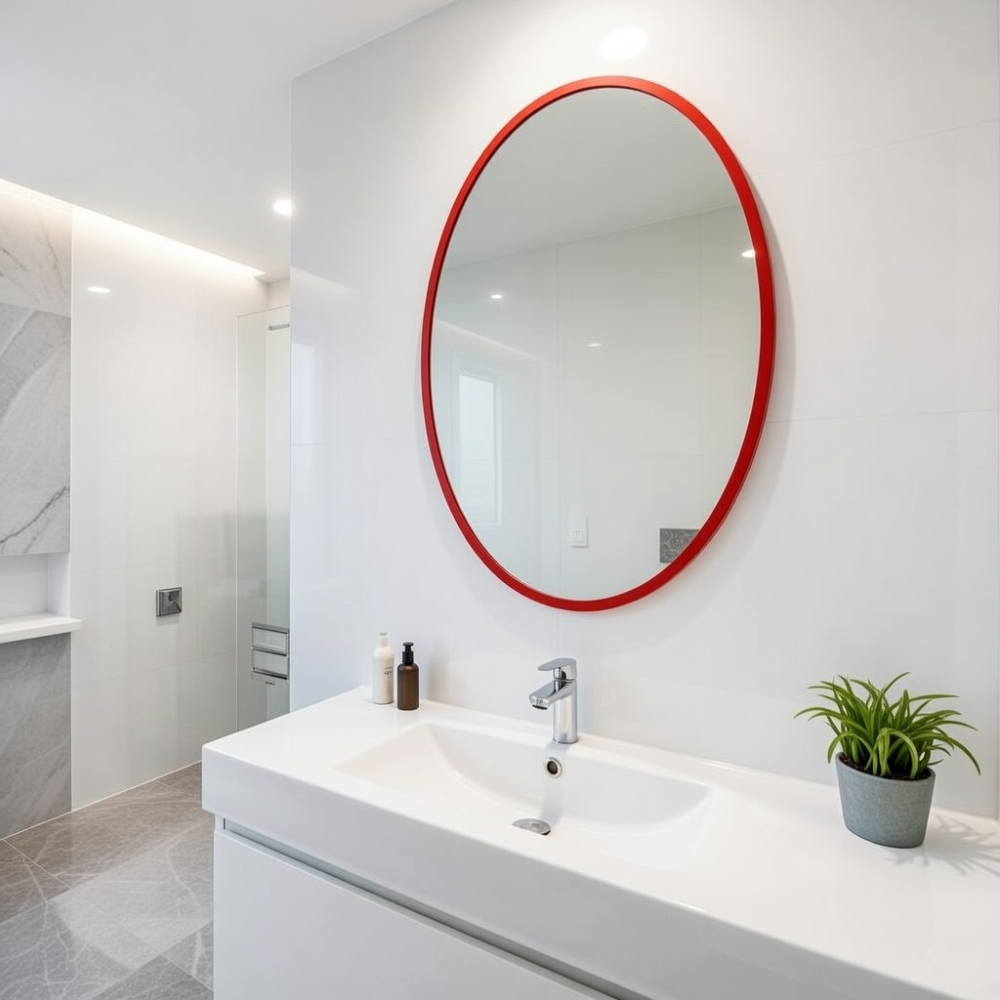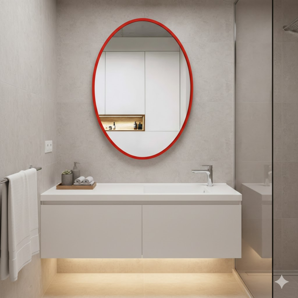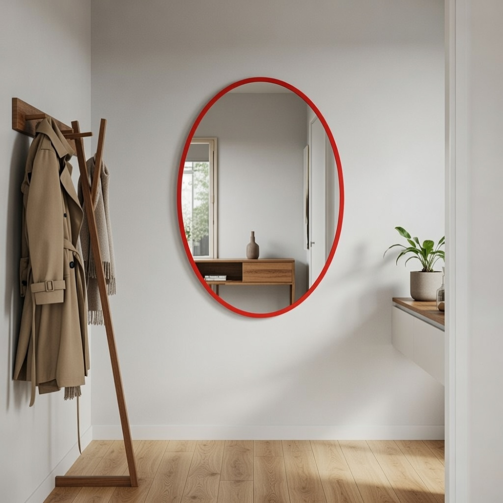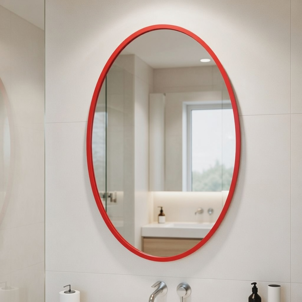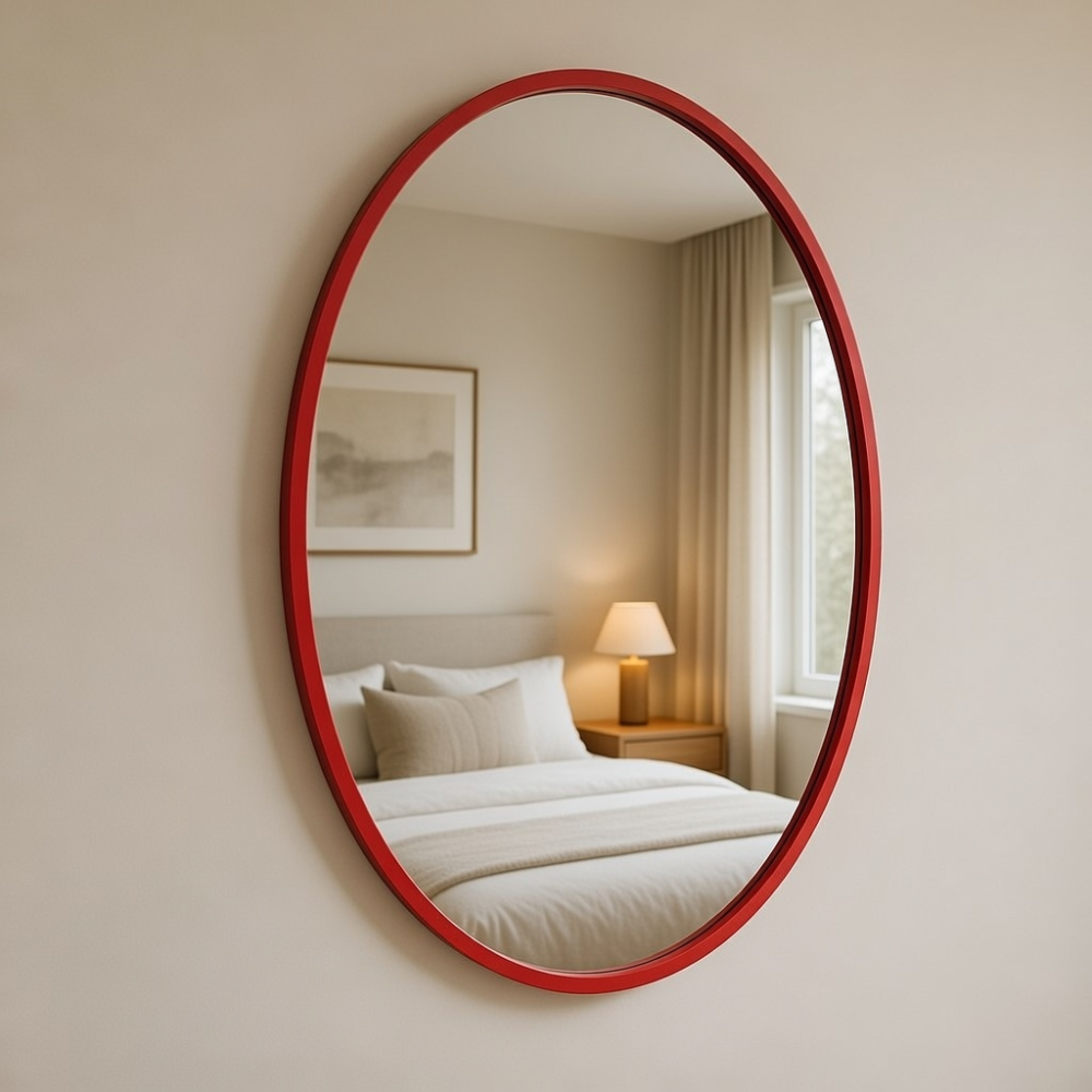Элегантное овальное зеркало «Каролина» в яркой раме. Благодаря классической форме и современному цветовому решению, модель подходит как для жилых комнат, так и для коммерческих помещений (салонов красоты, кафе, студий).