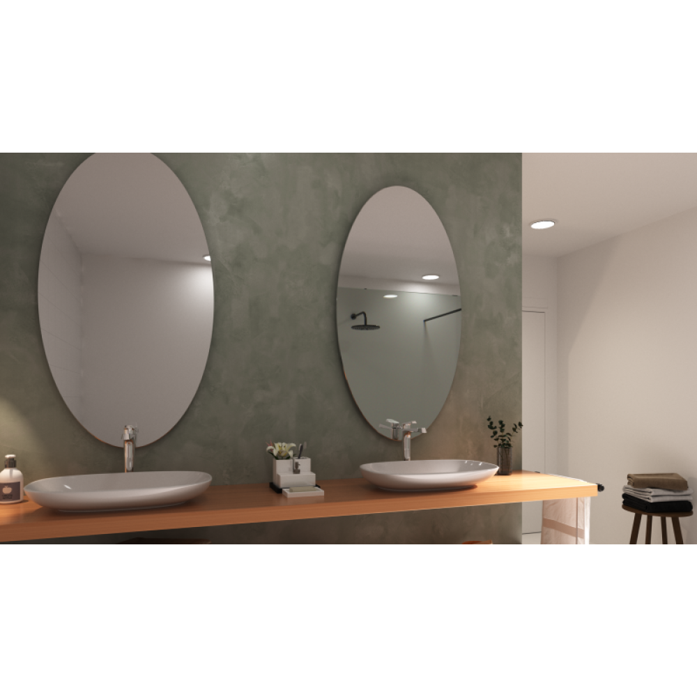 Овальное зеркало без рамы и без подсветки — это стильный и универсальный элемент интерьера, который легко впишется в любой дизайн. Оно имеет гладкую поверхность, которая обеспечивает чёткое отражение без искажений.
