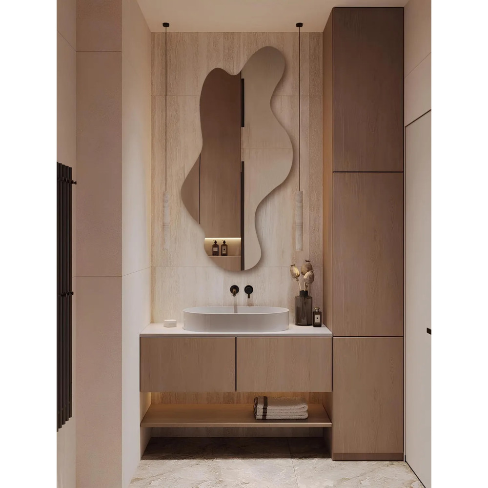 Зеркало E089 — это выразительный элемент современного интерьера, который объединяет оригинальную дизайнерскую форму и мягкую фоновую подсветку. Благодаря асимметричным плавным линиям зеркало превращается в арт-объект, способный мгновенно оживить пространство и добавить ему индивидуальности.