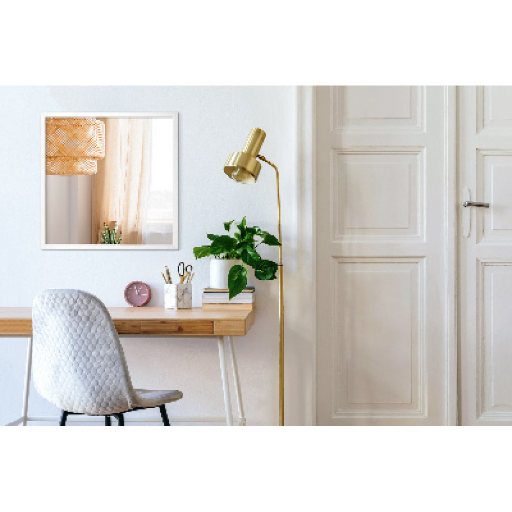 Зеркало DR002 выполнено в квадратной форме и обрамлено белой рамой, которая придаёт модели лёгкость и свежесть. Оно гармонично вписывается как в классические, так и в современные интерьеры, создавая ощущение простора и чистоты.