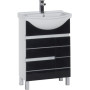 Тумба стильного набора мебели для ванной комнаты Акванет Доминика в стиле «модерн» может являться самостоятельным предметом ванной комнаты. Контраст черного и белого, оригинальные детали - ручки в виде заглубленного в фасады профиля и ритм, создаваемый горизонтальными элементами отделки – подчеркивают неординарность и экзотичность. Функциональная часть напольной тумбы представлена двумя вместительными ящиками и отделением на распашной дверце. В комплекте поставляется раковина-столешница из санфаянса. Широкая площадка у смесителя позволит разместить необходимые мелочи так, чтобы они всегда были под рукой. Дополнительно можно приобрести высокий пенал с большими секциями с дверцами и двумя открытыми полочками, а также зеркало-шкаф с распашной дверцей и светодиодной подсветкой.