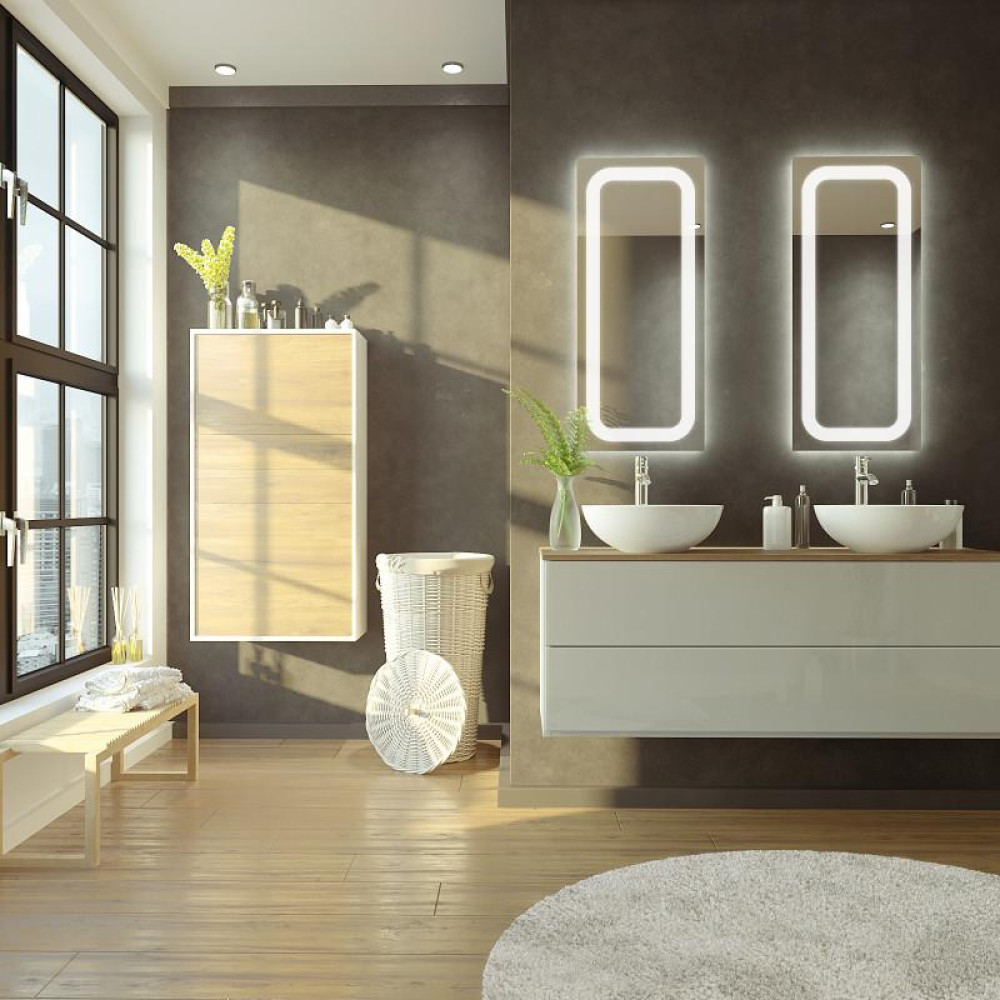 Фронтальная подсветка обеспечивает ровный, комфортный и яркий свет без искажений — идеально подходит для ухода за собой, макияжа и утренних процедур. Задняя фоновая подсветка создаёт мягкое рассеянное свечение, визуально отделяя зеркало от стены и формируя эффект лёгкого «парения», добавляя пространству глубину и атмосферность.